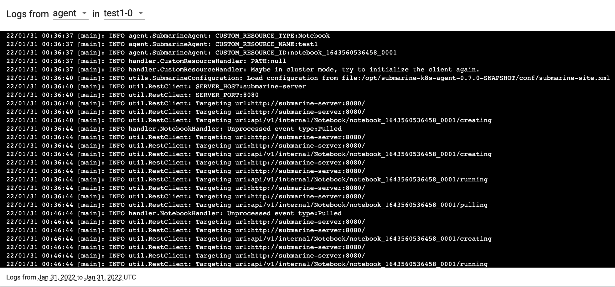 is monitoring the status of notebook from started to terminated, and each