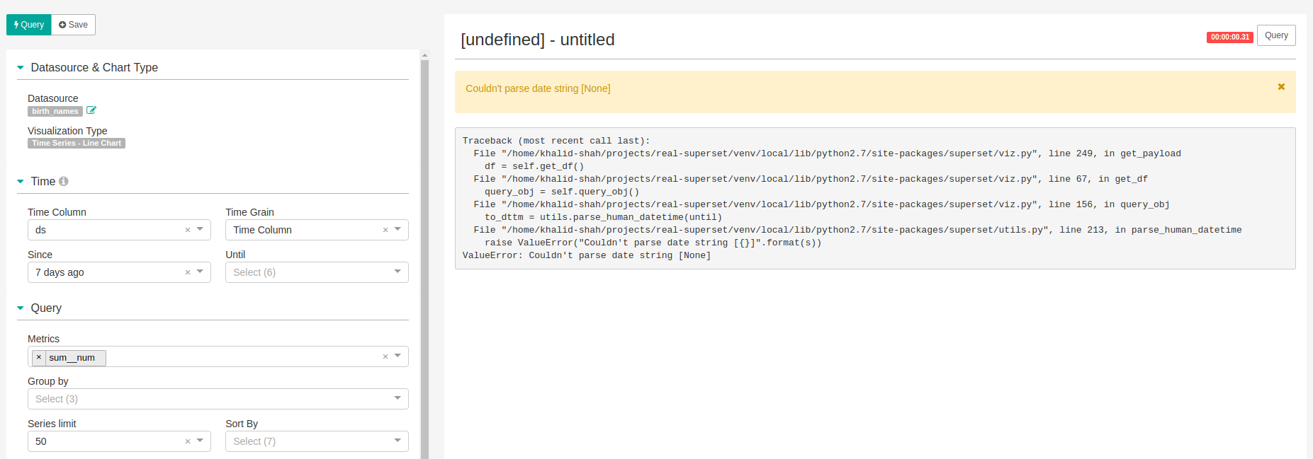 AKNiazi commented on issue #3398: exploreview fixed could not parse date string None error URL: https://github.com/apache/incubator-superset/pull/3398#issuecomment-326187639 How come you are getting infinity as an option.  ---------------------------------------------------------------- This is an automated message from the Apache Git Service. To respond to the message, please log on GitHub and use the URL above to go to the specific comment. For queries about this service, please contact Infrastructure at: [email protected]