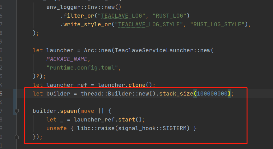我在对应ocall/ecall函数的服务app/main.rs 新建了个线程并修改stack_size方法,可以了。  这样应该不会对底层有什么影响吧? 走了一下流程是通的