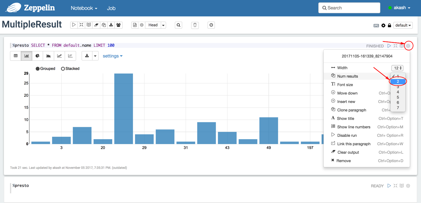 * Open any new notebook and select the num results options in paragraph