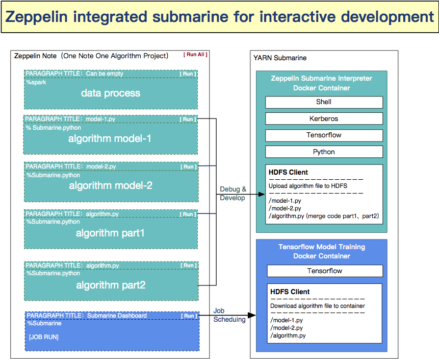 liuxunorg commented on issue #3314: [ZEPPELIN-4019] Interpreter process get note from server URL: https://github.com/apache/zeppelin/pull/3314#issuecomment-467693440 ## Submarine interpreter The use of the submarine interpreter to write the tensorflow algorithm follows such a rule. **One Note One Algorithms Project** Because a tensorflow algorithm may have multiple python modules. That is, multiple python files. 1. The user writes all the modules of the algorithm in a note. 2. Each module is written in a separate paragraph. 3. Click the `JOB RUN` button in the submarine dashboard to submit all the algorithms in the entire note at one time. So when the entire paragraph of the submarine dashboard is executed, you need to get the data from all the paragraphs in the entire note, and create a python file for the algorithm in each paragraph.  1. The newly added `RemoteInterpreterEventClient::getNoteFromServer()` has checked the permissions of the noteId. Only the `user's own note`, the note `shared with the user's read permission`, can be successfully obtained. 2. And support json data compressed note from the server to the interpreter process. ## Workflow and orchestration Workflow and orchestration that may be developed in the future, Also need to get the user's list of notes and paragraphs in the interpreter process. Because the user needs to be in the Workflow dashboard,Use the `drop-down box` control to display a list of notes and paragraphs that you have permission to operate. Workflow orchestration of notes and paragraphs by way of selection. The user experience will be better and not easy to make mistakes. Of course, Workflow is another topic.