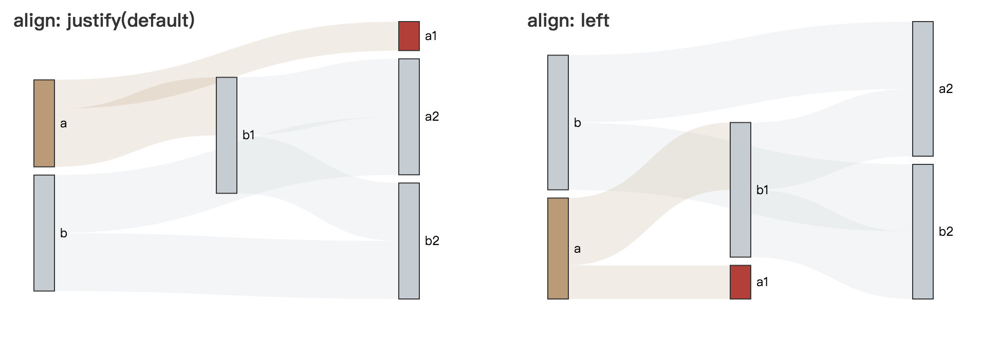 Currently, Sankey chart will align all the node without `outEgdes` in the last column. It doesn't make sense when I draw a flow chart. I added the `align` option to `SankeySeries` and has a default value `justify` which for compatible previous behaviors. The other value for the `align` option is `left`, which will not trigger `moveSinksRight` function and keep node left. Here are two pics for comparing them.