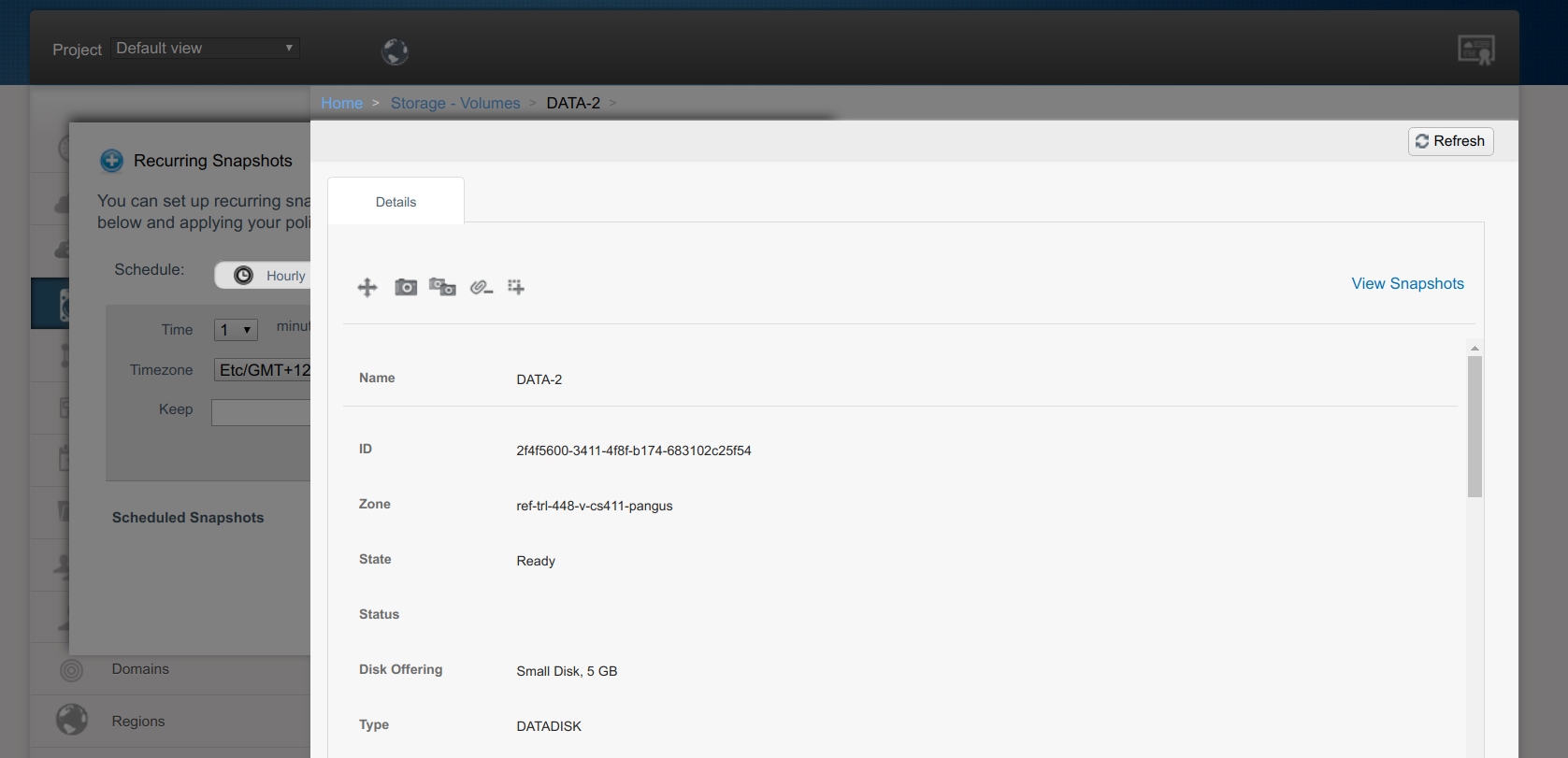 The env is based on master, no sure if it's already fixed. /cc @rafaelweingartner ##### ISSUE TYPE <!-- Pick one below and delete the rest --> * Bug Report * Improvement Request * Enhancement Request * Feature Idea * Documentation Report * Other ##### COMPONENT NAME <!-- Categorize the issue, e.g. API, VR, VPN, UI, etc. --> ~~~ UI ~~~ ##### CLOUDSTACK VERSION <!-- New line separated list of affected versions, commit ID for issues on master branch. --> ~~~ master ~~~ ##### CONFIGURATION <!-- Information about the configuration if relevant, e.g. basic network, advanced networking, etc. N/A otherwise --> ##### OS / ENVIRONMENT <!-- Information about the environment if relevant, N/A otherwise --> ##### SUMMARY <!-- Explain the problem/feature briefly --> <!-- You can also paste gist.github.com links for larger files --> ##### EXPECTED RESULTS <!-- What did you expect to happen when running the steps above? --> ~~~ UI should allow configuration of snapshot schedule ~~~ ##### ACTUAL RESULTS <!-- What actually happened? --> <!-- Paste verbatim command output between quotes below --> ~~~ Overlay stops user from using the snapshot scheduler widget ~~~ [ Full content available at: https://github.com/apache/cloudstack/issues/2830 ] This message was relayed via gitbox.apache.org for [email protected]