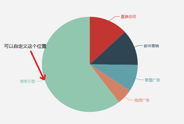 如何设置饼图外拉的线的起点位置,使其不是从正中位置出来,而是可以自定义位置。