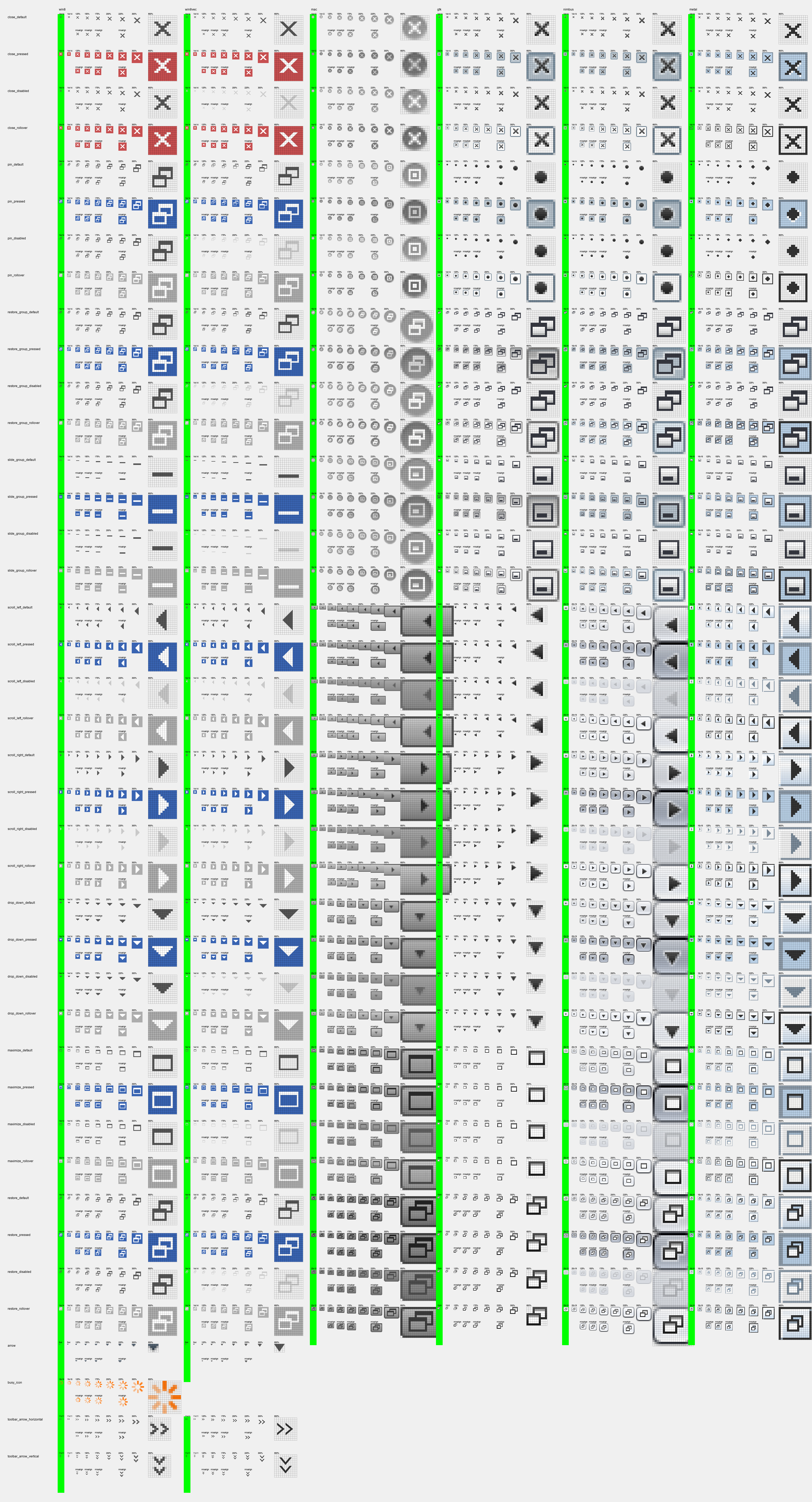 This commit introduces vector-drawn Icon implementations for the icons used in the window system's Windows 8 Look-and-Feel. Specifically, this replaces most of the bitmap icons that are used on Windows from the o.n.swing.tabcontrol and openide.awt modules.
