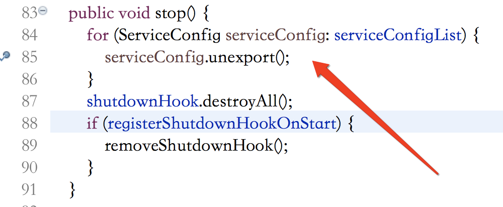 ### 关于2.6.3版本优雅关机问题 你好: * 1.经过测试DubboProtocol在关机时在此协议中是独立实现了的https://github.com/apache/incubator-dubbo/issues/2514 中提到org.apache.dubbo.registry.integration.RegistryProtocol.DestroyableExporter 这个类为任何协议使用时可以做到优雅关机。 * 2.在新版本中debug时发现DestroyableExporter的unexport()方法从没被调用到,追溯到上游代码发现在org.apache.dubbo.bootstrap.DubboBootstrap中registerServiceConfig(ServiceConfig)在全局中没任何调用,serviceConfigList始终为初始化状态,从而在DubboBootstrap.stop()进行关机时,应用启动暴露接口返回的DestroyableExporter没有任何代码去调用其unexport()进行关机前的取消注册与订阅操作以及等待用户设置dubbo.service.shutdown.wait时间操作。