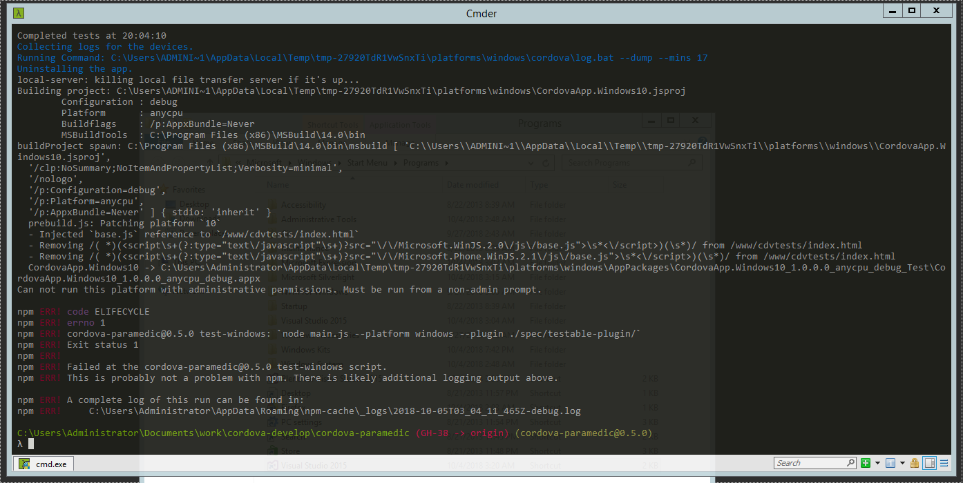 However the build procees seems to be finished normally. The appx file can be confirmed as  I could install this appx in other windows 10 PC and confirmed it working. I guess that this issue may happen in installing process. [ Full content available at: https://github.com/apache/cordova-paramedic/issues/37 ] This message was relayed via gitbox.apache.org for [email protected]