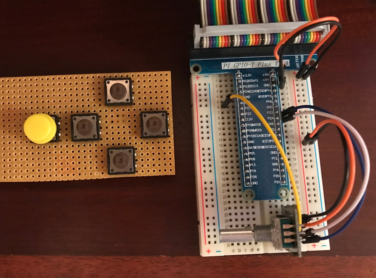 Thank you. Just for completeness, in addition to the rotary-encoder-with-push-button, I've wired up a number of simple push buttons, and I can get any one of them to do any of the programmed functions on any of the free GPIO pins, but whenever I try to programme two buttons it goes wrong.
