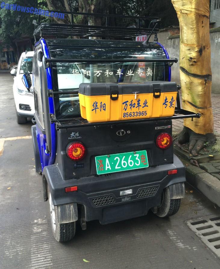 http://www.carnewschina.com/2014/11/06/spotted-in-china-the-dayang-chok-electric-mini-mini-car/ Spotted in China: the Dayang Chok electric mini-mini car November 6, 2014 by Tycho de Feijter [images http://www.carnewschina.com/wp-content/uploads/2014/11/dayang-chok-china-1.jpg http://www.carnewschina.com/wp-content/uploads/2014/11/dayang-chok-china-2.jpg http://www.carnewschina.com/wp-content/uploads/2014/11/dayang-chok-china-5a.jpg http://www.carnewschina.com/wp-content/uploads/2014/11/dayang-chok-china-3.jpg http://www.carnewschina.com/wp-content/uploads/2014/11/dayang-chok-china-5.jpg http://www.carnewschina.com/wp-content/uploads/2014/11/chok.jpg http://www.carnewschina.com/wp-content/uploads/2014/11/chok-2.jpg http://www.dayangmotorcycle.com/userfiles/364/201309/18/201309180392.jpg ] A very fuzzy funky Dayang Chok, Spotted in China in the great city of Chengdu in Sichuan Province by Reader Antoine Chalendard, thank you for the pictures! The Dayang Chok is an electric mini-mini car manufactured by Dayang Motorcycle, one of the largest motorcycle makers in China. Dayang Motorcycle is owned by Dayun Group, a giant conglomerate making heavy trucks, light trucks, and engines. Dayun Group also owns Weichai Power, one of the largest engine makers in China, and owner of the new Weichai Auto car brand. Back now to the Chok! The Chock is Dayang’s first foray into four wheels, and they did pretty well, designing a miniscule electric car that could be called trendy. This interesting photo comes from the Chok website, showing a trendy babe with a Pink Chock on a leash, with the boyfriend sitting inside. Yez, they like the babes at Dayang! The Chock is powered by a 2.8 kW-60V electric motor, mated to a 12V/120Ah lead-acid battery. Top speed is a decent 45 kilometer per hour and range an impressive 150 kilometer, which is a lot for such a small vehicle. Charging takes 6-8 hours on 220V. Price for all this pretty: around 35.000 yuan or 5700 USD. Note roof rack and rack on the back, this tiny Chok can take a lot of stuff. The Chok and similar vehicles are street legal, but the exact regulations differ per city. In most cities you need a special permit and a license. This particular example has a green ‘green car’ license plate. Great little car, but need Pink to get the babe. Check Chok! [© 2014. CarNewsChina.com] ... [images http://www.chinamotorworld.com/ke/attached/image/20140123/20140123150435_12221.jpg For Love, For Two http://www.dayangmotorcycle.com/userfiles/364/201402/26/201402260034.jpg http://www.dayangmotorcycle.com/userfiles/364/201403/07/201403070014.jpg gal in wedding dress sitting in Chok http://www.dayangmotorcycle.com/userfiles/364/201402/26/201402260026.jpg multi-colored Chok http://img1.tyncar.com/uploads/allimg/140612/1-140612162U0433.jpg http://bbs.jzinfo.ha.cn/uploadimg/2013/12/07093259340.jpg http://www.dayangmotorcycle.com/userfiles/364/201408/18/201408180043.jpg Security/Police Chok http://www.dayangmotorcycle.com/userfiles/364/201408/18/201408180136.jpg http://www.dayangmotorcycle.com/userfiles/364/201309/27/201309270289.jpg http://www.dayangmotorcycle.com/userfiles/364/201309/18/201309180399.jpg ] ... http://www.coroflot.com/maxinle/DaYang-Chok-mini-vehivle DaYang Chok mini vehivle by Xinle Ma May 30, 2014 ... http://www.dayangmotorcycle.com/news/show_45500.html [translate.google.com] Dayang CHOK new energy lithium-volume low-speed four cars off the assembly line 2014-08-18 ... [image http://www.dayangmotorcycle.com/userfiles/364/201408/18/201408180086.jpg ] ... http://en.wikipedia.org/wiki/Peel_P50 ... http://www.peelengineering.com/peel-store/buy-peel ... http://jalopnik.com/5910190/the-worlds-smallest-cars-are-back-on-sale-for-insane-money ... http://en.wikipedia.org/wiki/Microca ... http://forum.wordreference.com/showthread.php?t=1040845 Chalk this one up for ... For EVLN posts use: http://www.evdl.org/archive/index.html#nabble+template%2FNamlServlet.jtp%3Fmacro%3Dsearch_page%26node%3D413529%26query%3Devln+-re%26sort%3Ddate http://www.petroleumworld.com/editorial14103001.htm “Pump” documentary is growing an EV-demand & a Big Oil-backlash trend http://www.poughkeepsiejournal.com/story/tech/science/environment/2014/11/02/homes-solar-panels-charge-cars/18359607/ Plugin drivers shifting from gas to solar power ... http://www.bdtonline.com/news/lifestyles/electric-car-drivers-trading-gasoline-for-solar-power/article_ff68623a-6122-11e4-a262-0b8392371c4d.html http://www.bizjournals.com/pacific/news/2014/10/22/sunetric-declines-to-renew-advertising-contract.html Customer stuck in the HECO solar quagmire drops Volta EVSE ad account + EVLN: Torque is Driving an EV Revolution (video) {brucedp.150m.com} -- View this message in context: http://electric-vehicle-discussion-list.413529.n4.nabble.com/EVLN-CNY35k-Dayang-Chok-mini-mini-micro-nEV-r-150km-ts-45kph-tp4672492.html Sent from the Electric Vehicle Discussion List mailing list archive at Nabble.com. _______________________________________________ UNSUBSCRIBE: http://www.evdl.org/help/index.html#usub http://lists.evdl.org/listinfo.cgi/ev-evdl.org For EV drag racing discussion, please use NEDRA (http://groups.yahoo.com/group/NEDRA)