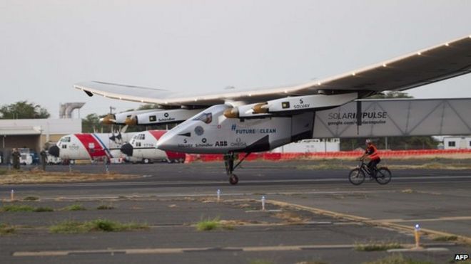 [image https://cdn2.vox-cdn.com/thumbor/cZLkelktycB2pBCvP3M20SUHfrM=/0x0:6000x4000/640x427/cdn0.vox-cdn.com/uploads/chorus_image/image/46715202/2014_08_28_8thFlight_revillard_55.0.0.jpg (Solar Impulse 2) ] Solar Impulse 2 is taking an breather after its record-breaking 117-hour, 52-minute flight from Japan to Hawaii last week that crushed the record for longest solo flight. The solar-powered aircraft sustained major damage to its batteries during the latest leg of its round-the-world voyage, according to a press release, and it will be two to three weeks before the aircraft flies again. Crews monitoring the aircraft during its flight from Nagoya to Hawaii noticed the overheating batteries during the plane's first ascent of the five-day journey. Unfortunately, the team was unable to reduce temperatures due to the cyclic nature of Solar Impulse's flights. Every day, the aircraft ascends to 28,000 feet and gathers energy before gliding back down towards Earth at night. The team believes that the overheating was due to excess insulation in the battery compartment. ""Damage to certain parts of the batteries is irreversible."" In a press release, the team says that "the damage to certain parts of the batteries is irreversible," adding that they'll need to obtain new parts and perform repairs that "will take several weeks to work through." Thankfully, alongside the repairs, engineers will be looking at how to better design the battery compartment to prevent a similar issue from occurring in the future during long flights. Solar Impulse co-founder and CEO André Borschberg piloted the plane on the record-breaking leg, but he won't be flying once the aircraft is back in action. His partner in this journey, Bertrand Piccard, will take the reins for the next flight, which is set to land in Phoenix, Arizona. After that, Solar Impulse will take a couple more stops in the US before hopping across the Atlantic and finally returning to Abu Dhabi, where this round-the-world trip first started in March. [© 2015 Vox Media] ... http://gizmodo.com/solar-impulse-fried-its-batteries-on-historic-five-day-1717220101 Solar Impulse Fried its Batteries on Historic Five Day Flight Maddie Stone 7/11/15 [image http://i.kinja-img.com/gawker-media/image/upload/s--Z0Efa0CQ--/c_fit,fl_progressive,q_80,w_636/1336193513331054407.jpg ] ... http://www.bbc.com/news/science-environment-33494123 Solar Impulse grounded for 2-3 weeks By Jonathan Amos [image http://ichef-1.bbci.co.uk/news/660/cpsprodpb/8F53/production/_84219663_028011105.jpg ] http://www.thedailystar.net/science/solar-impulse-plane-closes-hawaii-landing-107053 Solar Impulse plane closes in on Hawaii landing July 03, 2015 / BBC Online [image / BBC http://www.thedailystar.net/sites/default/files/styles/big_4/public/feature/images/solar.jpg Andre Borschberg has had to deal with quite a bit of turbulence in his lightweight plane http://www.thedailystar.net/sites/default/files/styles/big_4/public/news/images/solar_2.jpg The top surfaces of the aeroplane are covered in solar cells ] Andre Borschberg is into the final hours of his historic solar-powered flight across the Pacific. The Swiss adventurer is due to land at Kalaeloa, Hawaii, around 06:00 local time (1600 GMT; 17:00 BST) after an epic five-day trip from Japan. His Solar Impulse aeroplane has covered 8,000km this week, in what was always going to be the toughest leg in the quest to fly around the world. Wind conditions will determine the precise moment Borschberg puts down. His very lightweight vehicle, with its huge, 72m wingspan, needs calm air. And the pilot will be instructed to circle in front of Kalaeloa airport until meteorologists give him the all clear. There to meet Borschberg on the ground will be his partner on the Solar Impulse project, Bertrand Piccard. The pair have shared the flying duties in the single-seater plane's global effort, which began in Abu Dhabi, UAE, back in March. It is Piccard who will fly the next leg from Kalaeloa to Phoenix, Arizona. That is not quite as far as the current stint, but it still likely to take four days and nights. From Phoenix, Solar Impulse will head for New York and an Atlantic crossing that would eventually see the plane return to Abu Dhabi. But the Solar Impulse ground crew will need a few days first in Kalaeloa to check over the aircraft, before meteorologists once again take on the tricky task of finding a flight window. Getting from China to Hawaii proved more problematic than anyone could have imagined. The project was stuck in Nanjing for five weeks before the first attempt to cross the ocean was made. This had to be aborted because of a sudden deterioration in the weather, and the plane was diverted to Nagoya. One further attempt was then abandoned moments from take-off, before Solar Impulse finally got a clear run out of Japan on Monday. Even so, Borschberg had to cross two cold fronts and endure some uncomfortable turbulence. That bumpiness disrupted his already truncated sleep opportunities. Over the course of the past week, the pilot has been permitted only 20-minute catnaps. The journey from Nagoya to Kalaeloa smashes the absolute distance and duration world records for manned solar-powered aeroplanes - records that Solar Impulse itself set on earlier flights. In terms of general aviation, the big record broken on this flight is the 2006 mark established by the American adventurer Steve Fossett for the longest duration solo flight in an un-refuelled plane. Fossett set this record in a jet-powered plane, the Virgin GlobalFlyer. Borschberg bettered it when he went through 76 hours in the air. And if he lands at the expected time of 06:00, he will raise the mark still further to 118 hours. Borschberg and Piccard have used the various stopovers on their round-the-world journey to carry a campaigning message to local people on the topic of clean technologies. Their Solar Impulse plane is not intended to be a vision of the future of aviation. Rather, it i