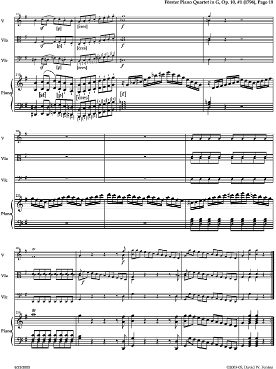 If Kim is still working on the same repertory he's been doing so much work in, it's a scholarly edition of Baroque music (which looks like that's what's in his illustration). Brackets are *not* obtrusive at all. And it's important to distinguish editorial dynamics so that an interpreter can ignore them, if she chooses. They are editorial suggestions and someone using an edition with brackets can immediately see what can be omitted or altered. A footnote makes that substantially harder to do. Note also that many critical editions don't use brackets, but use non- italic for original dynamics and italic for editorial additions. The problem is that it's hard to remember which is which if you're not careful. One could use italic for original dynamics using the Finale fonts, and create non-italic dynamics for the editorial additions without brackets, but I find that will cause them to not be noticed as editorial, and would just look funny to many people, who'd wonder why there are dynamics in two different fonts. Brackets make the meaning completely clear, with no need for footnotes or explanation. Tell me that this: http://www.dfenton.com/Midi/Foerster10_1/Foerster10_1_019.png is cluttered, in regard to dynamics. Certainly, I would agree that the editorial strokes are cluttered, and haven't decided what I'm going to do for the final edition (I may just change it so there's an opening bracket on the first of a run of them and a closing editorial bracket on the last; but I like having only a single definition for the editorial stroke, and that would mean creating 2 different ones, or using the non-editorial stroke and then not knowing except by looking at context, which of the strokes is editorial; the advantage of having a separate definition is that you can change them all at once to make them obvious, and do things like replace them in parts with a standard articulation, if you want), but I think the brackets can be made to work just fine, at least for dynamics, if not for articulations that are repeated. -- David W. Fenton http://dfenton.com David Fenton Associates http://dfenton.com/DFA/ _______________________________________________ Finale mailing list [email protected] http://lists.shsu.edu/mailman/listinfo/finale