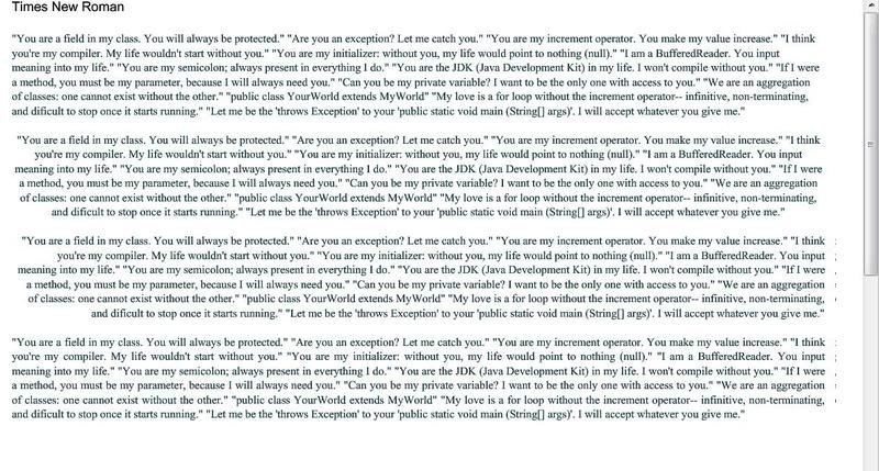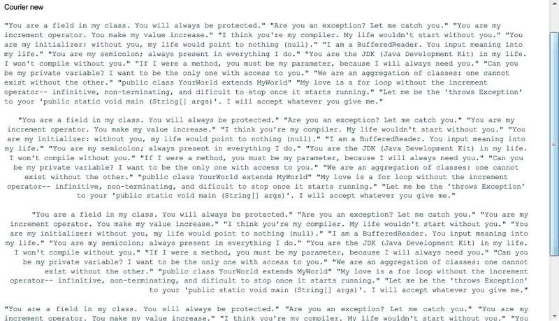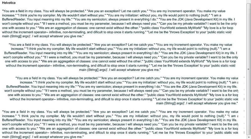 I was thinking the same thing, padding to the textWidth calculation, but I didn't want to do it immediately because a)it looks troublesome, and b)I feel like I'm just missing something. Anyway, thanks for confirming. Greatly appreciate it. :) Renz --- In [email protected], "Rick Winscot" <[EMAIL PROTECTED]> wrote: > > Renz, > > > > I took a look at the font you sent - and the metrics looks fine. I created a > simple app; embedded font, text area and three paragraphs of "lorem ipsum." > I was able to duplicate your findings easily with every font with all three > justifications. I then ran a series of tests with some other fonts and found > that even fixed width fonts had similar issues. It's much less pronounced - > but it is still a problem. I then checked the Adobe bug-base and found a > scad of entries that had to deal with embedded fonts getting cropped. > > > > https://bugs.adobe.com/jira/browse/SDK-15194 > > https://bugs.adobe.com/jira/browse/SDK-2752 > > https://bugs.adobe.com/jira/browse/SDK-3974 > > > > I think that this is one to turn over to Adobe. It's obvious that there is > either a problem in the player or flex framework with character advancement > calculation. The only way around this would be to intercept/override the > width calculation of the text and add a 10px padding. and hope for the best. > I apologize for the lack of 'good news.' > > > > Rick Winscot > > > > > > > > > > From: [email protected] [mailto:[EMAIL PROTECTED] On > Behalf Of renzeullo > Sent: Sunday, April 13, 2008 10:10 PM > To: [email protected] > Subject: [flexcoders] Re: Embedded Fonts and Text Alignment problem in Text > control > > > > Hi Rick, > > Thanks for taking time to check on this. :). I have sent the > misbehaving font to your email ([EMAIL PROTECTED] > <mailto:rwinscot%40yahoo.com> , correct?). > > I am leaning towards believing that this is a problem with the width > values that the fonts are passing to flex. I just don't have an idea > on how to check on it. :( > > Thanks in advance. > > Renz > > @Alex: Thanks too. I appreciate the help. :) > > --- In [email protected] <mailto:flexcoders%40yahoogroups.com> , > "Rick Winscot" <rick.winscot@> > wrote: > > > > Renz - you say that Courier New works ok? This is a fixed width > font. which > > has me wondering if this has something to do with how the font > packages are > > generated. If in the process - each characters advancement is getting > > ignored/cheated/mangled one would expect to see something similar to > your > > screen captures. Can you send me one of your .ttf that is > misbehaving? I'd > > like to generate the embed on my machine and examine the glyph > metrics. > > > > > > > > Rick Winscot > > > > > > > > > > > > From: [email protected] <mailto:flexcoders%40yahoogroups.com> > [mailto:[email protected] <mailto:flexcoders%40yahoogroups.com> ] > On > > Behalf Of Alex Harui > > Sent: Friday, April 11, 2008 11:57 PM > > To: [email protected] <mailto:flexcoders%40yahoogroups.com> > > Subject: RE: [flexcoders] Re: Embedded Fonts and Text Alignment > problem in > > Text control > > > > > > > > Unfortunately, I don't have the time to do any further analysis. Please > > file a bug with your test cases. > > > > > > > > Font rendering is sensitive to variances in how the font is described vs > > what the glyph data actually dictates. Common fonts shouldn't have this > > problem, but you never know. There are several rendering > adjustments you > > can make like antiAliasType and gridFitType. Maybe those will help. > > > > > > > > -Alex > > > > > > > > _____ > > > > From: [email protected] <mailto:flexcoders%40yahoogroups.com> > [mailto:[email protected] <mailto:flexcoders%40yahoogroups.com> ] > On > > Behalf Of renzeullo > > Sent: Friday, April 11, 2008 8:33 PM > > To: [email protected] <mailto:flexcoders%40yahoogroups.com> > > Subject: [flexcoders] Re: Embedded Fonts and Text Alignment problem > in Text > > control > > > > > > > > Hi Alex, > > > > Thank you very much for the help. > > > > Yes, there was a reflow when the textField.width is adjusted. Please > > check the images below for reference. I also tried it using different > > fonts. First image is using regular mx:Text, second image is using the > > modified code adding 10 to textField.width. > > > > Also, notice that some of the truncated text has bits of the truncated > > parts separated from them and gets rendered a few pixels to the right > > of the border, but its still not the entirety of the truncated parts. > > > > Verdana > > http://i87.photobucket.com/albums/k155/ernieldiaz/Verdana_no_adjust.jpg > > http://i87.photobucket.com/albums/k155/ernieldiaz/Verdana_10.jpg > > > > Arial > > http://i87.photobucket.com/albums/k155/ernieldiaz/Arial_no_adjust.jpg > > http://i87.photobucket.com/albums/k155/ernieldiaz/Arial_10.jpg > > > > Courier New > > http://i87.photobucket.com/albums/k155/ernieldiaz/Courier_no_adjust.jpg > > http://i87.photobucket.com/albums/k155/ernieldiaz/Courier_10.jpg > > > > Helvetica > > > http://i87.photobucket.com/albums/k155/ernieldiaz/Helvetica_no_adjust.jpg > > http://i87.photobucket.com/albums/k155/ernieldiaz/Helvetica_10.jpg > > > > Times New Roman > > http://i87.photobucket.com/albums/k155/ernieldiaz/TNR_no_adjust.jpg > > http://i87.photobucket.com/albums/k155/ernieldiaz/TNR_10.jpg > > > > Georgia > > http://i87.photobucket.com/albums/k155/ernieldiaz/Georgia_no_adjust.jpg > > http://i87.photobucket.com/albums/k155/ernieldiaz/Georgia_10.jpg > > > > It seems to not happen with Verdana and Courier New. But I also > > noticed a highlighting problem that happens with Verdana nonetheless. > > Screenshot is found below. It seems that I cannot fully highlight the > > last character on the line if it reaches the border. In the picture, I > > highlighted "ation of classes, one", but only half of the "e" in "one" > > is highlighted. If I copy and paste the text into notepad, it only > > pastes "ation of classes, on". > > > > Highlighting problem > > http://i87.ph