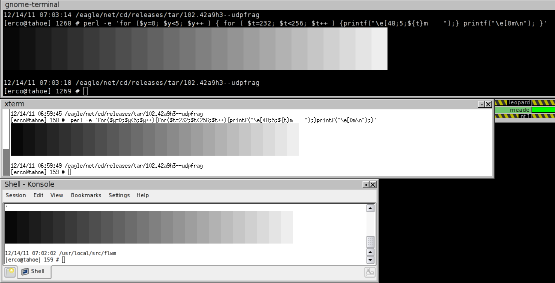 perl -e 'for($y=0;$y<5;$y++){for($t=232;$t<256;$t++){printf("\e[48;5;${t}m