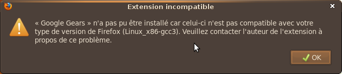 New issue 979 by fmaz008: Google Gears not compatible with your version of FireFox (Linux_x86-gcc3)