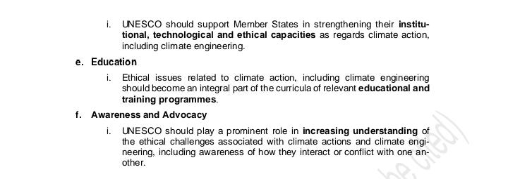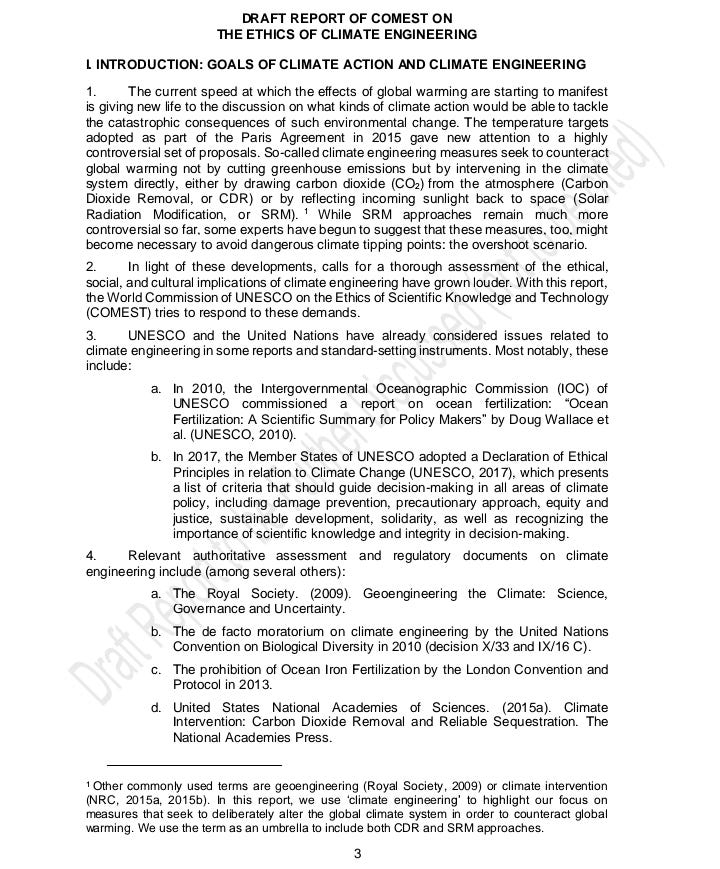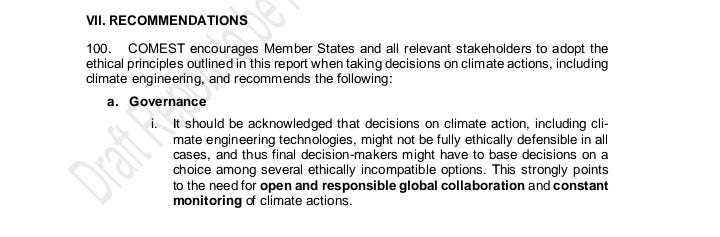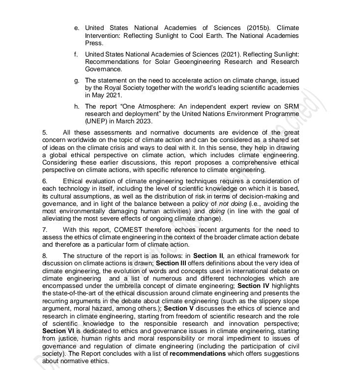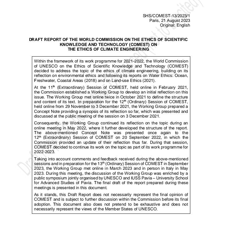Comments on “*Draft report of the World Commission on the Ethics of Scientific Knowledge & Technology (COMEST) on the ethics of climate engineering*” can be sent to: [email protected] by putting *COMEST CE DRAFT REPORT *in the subject line. Deadline: 15th September 2023 On Sat, Sep 2, 2023, 4:52 PM Geoengineering News < [email protected]> wrote: > > > https://unesdoc.unesco.org/ark:/48223/pf0000386677?posInSet=2&queryId=b6f89936-d78a-431d-9f59-51212304ae5c > > > > *DRAFT REPORT OF THE WORLD COMMISSION ON THE ETHICS OF SCIENTIFIC > KNOWLEDGE AND TECHNOLOGY (COMEST) ON THE ETHICS OF CLIMATE ENGINEERING* > > *21 August 2023* > > > <https://substackcdn.com/image/fetch/f_auto,q_auto:good,fl_progressive:steep/https%3A%2F%2Fsubstack-post-media.s3.amazonaws.com%2Fpublic%2Fimages%2F6d37f87c-97b0-46fd-9f35-ee8272c5e1d1_720x739.png> > > <https://substackcdn.com/image/fetch/f_auto,q_auto:good,fl_progressive:steep/https%3A%2F%2Fsubstack-post-media.s3.amazonaws.com%2Fpublic%2Fimages%2F8685fdd4-6c89-4593-bbce-c5674d9db1d9_720x869.png> > > <https://substackcdn.com/image/fetch/f_auto,q_auto:good,fl_progressive:steep/https%3A%2F%2Fsubstack-post-media.s3.amazonaws.com%2Fpublic%2Fimages%2Fa8ab4a49-1ec6-45dc-ad76-2a468619330d_720x753.png> > > <https://substackcdn.com/image/fetch/f_auto,q_auto:good,fl_progressive:steep/https%3A%2F%2Fsubstack-post-media.s3.amazonaws.com%2Fpublic%2Fimages%2Ffade8adf-c5e8-4713-b41c-4e8f4a3627ca_720x237.png> > > <https://substackcdn.com/image/fetch/f_auto,q_auto:good,fl_progressive:steep/https%3A%2F%2Fsubstack-post-media.s3.amazonaws.com%2Fpublic%2Fimages%2F60f92cd7-59f5-4d91-b456-7d1a2e1fefee_720x851.png> > > <https://substackcdn.com/image/fetch/f_auto,q_auto:good,fl_progressive:steep/https%3A%2F%2Fsubstack-post-media.s3.amazonaws.com%2Fpublic%2Fimages%2F7a79409b-999e-4f9a-952c-6e15bb686573_720x255.png> > > <https://substackcdn.com/image/fetch/f_auto,q_auto:good,fl_progressive:steep/https%3A%2F%2Fsubstack-post-media.s3.amazonaws.com%2Fpublic%2Fimages%2F7a79409b-999e-4f9a-952c-6e15bb686573_720x255.png>*Source: > UNESCO* > <https://substackcdn.com/image/fetch/f_auto,q_auto:good,fl_progressive:steep/https%3A%2F%2Fsubstack-post-media.s3.amazonaws.com%2Fpublic%2Fimages%2F7a79409b-999e-4f9a-952c-6e15bb686573_720x255.png> > > -- You received this message because you are subscribed to the Google Groups "geoengineering" group. To unsubscribe from this group and stop receiving emails from it, send an email to [email protected]. To view this discussion on the web visit https://groups.google.com/d/msgid/geoengineering/CAHJsh9-6abH9FHY9NKNDNRG162fYL0O3kY1AJHBVm7ExN17L4w%40mail.gmail.com.