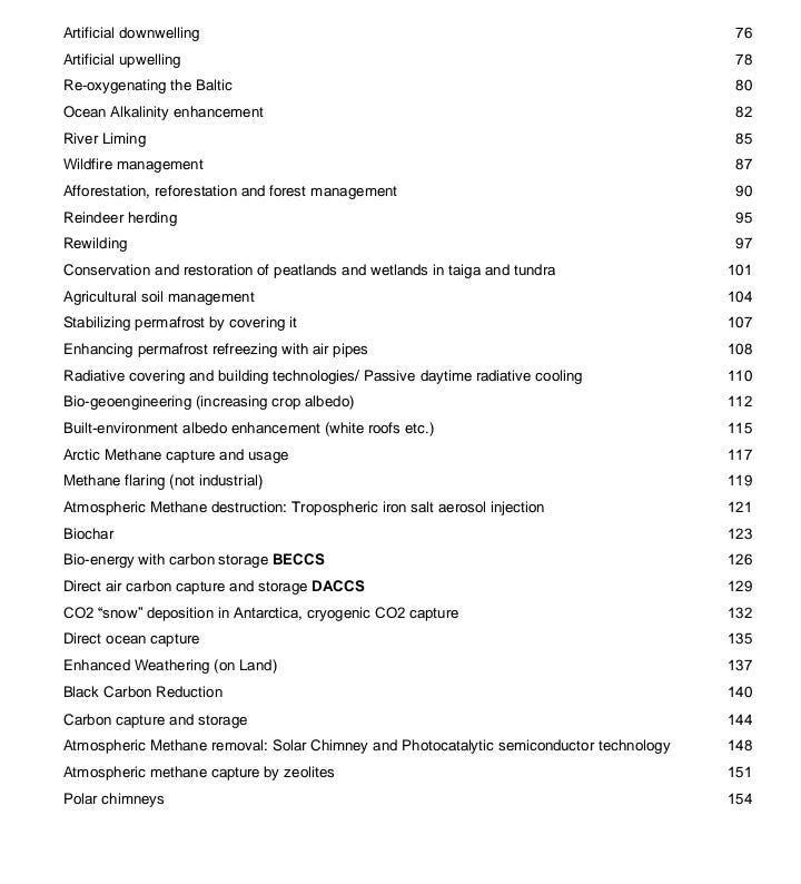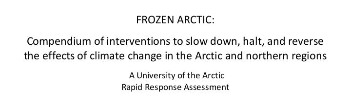 https://new.uarctic.org/media/to0bjpal/frozen-arctic-rra-compendium.pdf *FROZEN ARCTIC:* *Compendium of interventions to slow down, halt, and reverse the effects of climate change in the Arctic and northern regions* <https://substackcdn.com/image/fetch/f_auto,q_auto:good,fl_progressive:steep/https%3A%2F%2Fsubstack-post-media.s3.amazonaws.com%2Fpublic%2Fimages%2F149cfa7e-0514-462e-95e5-e89240d9e4ca_720x220.png> <https://substackcdn.com/image/fetch/f_auto,q_auto:good,fl_progressive:steep/https%3A%2F%2Fsubstack-post-media.s3.amazonaws.com%2Fpublic%2Fimages%2F99e9271f-b390-4d1f-8a57-1d7b8703d6d5_720x837.png> <https://substackcdn.com/image/fetch/f_auto,q_auto:good,fl_progressive:steep/https%3A%2F%2Fsubstack-post-media.s3.amazonaws.com%2Fpublic%2Fimages%2F77fc0320-fbb5-44e9-895b-b9ed2fd3c417_720x794.png> <https://substackcdn.com/image/fetch/f_auto,q_auto:good,fl_progressive:steep/https%3A%2F%2Fsubstack-post-media.s3.amazonaws.com%2Fpublic%2Fimages%2F594a14a8-4e98-4095-a3b0-18cbd84a1d45_720x819.png> <https://substackcdn.com/image/fetch/f_auto,q_auto:good,fl_progressive:steep/https%3A%2F%2Fsubstack-post-media.s3.amazonaws.com%2Fpublic%2Fimages%2F388213bc-78fa-4aa3-a110-fae4e4262ca7_720x884.png> <https://substackcdn.com/image/fetch/f_auto,q_auto:good,fl_progressive:steep/https%3A%2F%2Fsubstack-post-media.s3.amazonaws.com%2Fpublic%2Fimages%2F4aad3896-92af-4576-bfe3-f0332477e1ed_720x887.png> <https://substackcdn.com/image/fetch/f_auto,q_auto:good,fl_progressive:steep/https%3A%2F%2Fsubstack-post-media.s3.amazonaws.com%2Fpublic%2Fimages%2Fe3deff1f-16e5-4046-a32d-8cddf5619d62_720x886.png> <https://substackcdn.com/image/fetch/f_auto,q_auto:good,fl_progressive:steep/https%3A%2F%2Fsubstack-post-media.s3.amazonaws.com%2Fpublic%2Fimages%2F897b1edc-a0e1-48a0-a2b4-201287f6bbbe_720x889.png> <https://substackcdn.com/image/fetch/f_auto,q_auto:good,fl_progressive:steep/https%3A%2F%2Fsubstack-post-media.s3.amazonaws.com%2Fpublic%2Fimages%2F7feba117-f74a-42ea-9069-c9c5d0cc07c8_720x883.png> <https://substackcdn.com/image/fetch/f_auto,q_auto:good,fl_progressive:steep/https%3A%2F%2Fsubstack-post-media.s3.amazonaws.com%2Fpublic%2Fimages%2Fa45d3ff9-ea20-44b3-92b4-64238e9199e6_720x896.png> *Source: A University of the Arctic, Rapid Response Assessment* -- You received this message because you are subscribed to the Google Groups "geoengineering" group. To unsubscribe from this group and stop receiving emails from it, send an email to [email protected]. To view this discussion on the web visit https://groups.google.com/d/msgid/geoengineering/CAHJsh9_3-78sO-732e%2B%3DnDwqZSOa1yccWftEQSQq%2BUxyd8%2BD3Q%40mail.gmail.com.