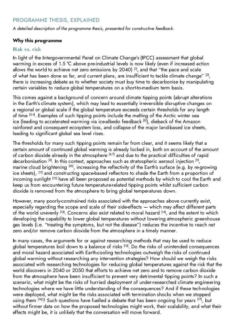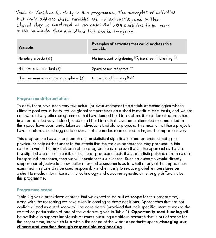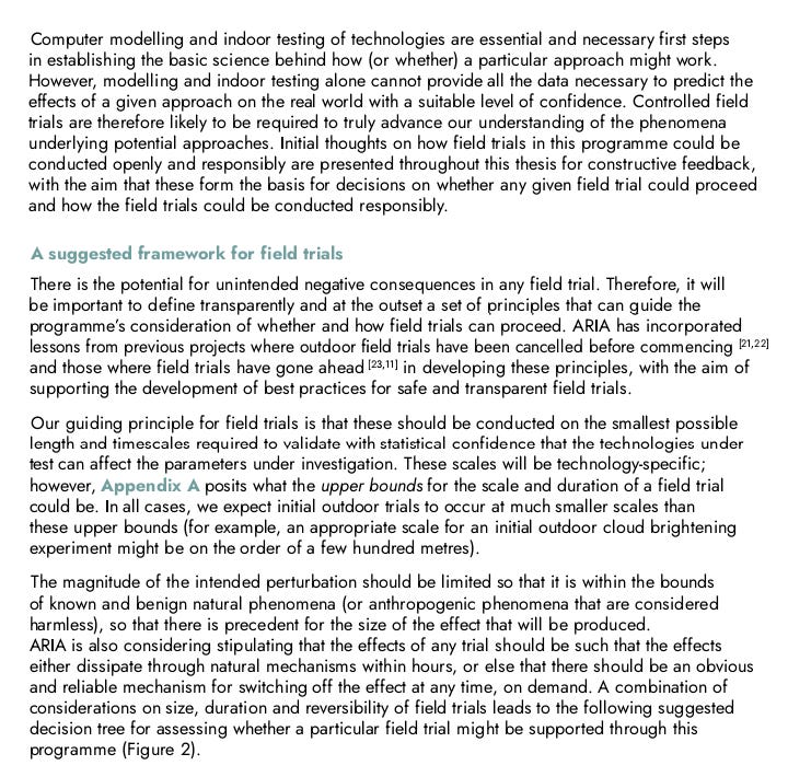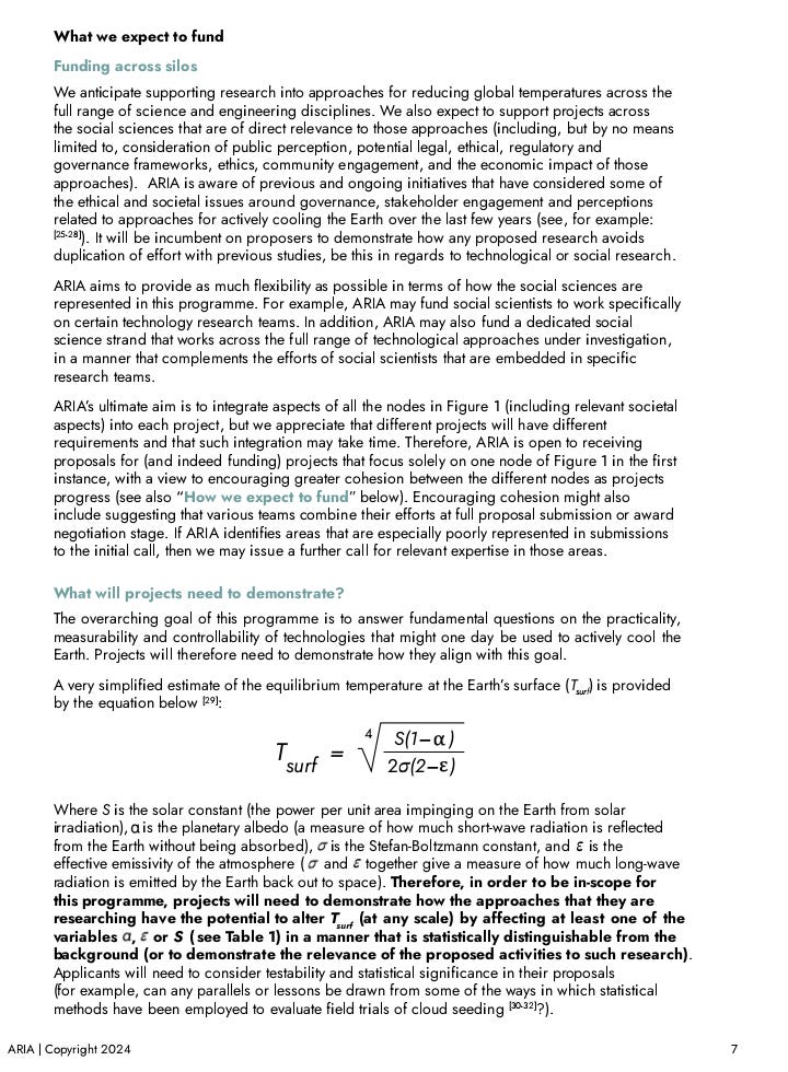 *Mark Symes, Programme Director* *07 May 2024* <https://substackcdn.com/image/fetch/f_auto,q_auto:good,fl_progressive:steep/https%3A%2F%2Fsubstack-post-media.s3.amazonaws.com%2Fpublic%2Fimages%2F573e38ed-07fa-45b6-b11e-0d64a5911819_720x1003.png> <https://substackcdn.com/image/fetch/f_auto,q_auto:good,fl_progressive:steep/https%3A%2F%2Fsubstack-post-media.s3.amazonaws.com%2Fpublic%2Fimages%2Fec6ed1f8-2ae5-4d46-9f63-27196cf09f6b_720x1033.png> <https://substackcdn.com/image/fetch/f_auto,q_auto:good,fl_progressive:steep/https%3A%2F%2Fsubstack-post-media.s3.amazonaws.com%2Fpublic%2Fimages%2F890cf2fd-2e5e-4556-984f-296ef3124000_720x1096.png> <https://substackcdn.com/image/fetch/f_auto,q_auto:good,fl_progressive:steep/https%3A%2F%2Fsubstack-post-media.s3.amazonaws.com%2Fpublic%2Fimages%2Fd05cb614-5a51-40f5-a6c0-0e7b3aadd261_720x710.png> <https://substackcdn.com/image/fetch/f_auto,q_auto:good,fl_progressive:steep/https%3A%2F%2Fsubstack-post-media.s3.amazonaws.com%2Fpublic%2Fimages%2Fa81beef1-e95f-4ddb-8c3c-97f9932c1768_720x1014.png> <https://substackcdn.com/image/fetch/f_auto,q_auto:good,fl_progressive:steep/https%3A%2F%2Fsubstack-post-media.s3.amazonaws.com%2Fpublic%2Fimages%2F12bb859d-2942-4517-bf55-c24d1451c8ca_720x816.png> <https://substackcdn.com/image/fetch/f_auto,q_auto:good,fl_progressive:steep/https%3A%2F%2Fsubstack-post-media.s3.amazonaws.com%2Fpublic%2Fimages%2Fc223da75-5c25-40dd-8fb4-3abe13871a24_720x980.png> <https://substackcdn.com/image/fetch/f_auto,q_auto:good,fl_progressive:steep/https%3A%2F%2Fsubstack-post-media.s3.amazonaws.com%2Fpublic%2Fimages%2F298a4bde-9ffd-4c2e-9196-c7b09ccf3fb5_720x794.png> <https://substackcdn.com/image/fetch/f_auto,q_auto:good,fl_progressive:steep/https%3A%2F%2Fsubstack-post-media.s3.amazonaws.com%2Fpublic%2Fimages%2Ff8223b8b-9910-4825-a76d-db1c9033efe6_720x837.png> <https://substackcdn.com/image/fetch/f_auto,q_auto:good,fl_progressive:steep/https%3A%2F%2Fsubstack-post-media.s3.amazonaws.com%2Fpublic%2Fimages%2F451f7388-4992-4083-a513-d8a58a76af37_720x947.png> <https://substackcdn.com/image/fetch/f_auto,q_auto:good,fl_progressive:steep/https%3A%2F%2Fsubstack-post-media.s3.amazonaws.com%2Fpublic%2Fimages%2F692b974f-fe32-4e58-ab8a-7f19aaf1594d_720x875.png> <https://substackcdn.com/image/fetch/f_auto,q_auto:good,fl_progressive:steep/https%3A%2F%2Fsubstack-post-media.s3.amazonaws.com%2Fpublic%2Fimages%2F7d16ebf9-9c33-40c5-929a-87daca37d5e5_714x518.png> *Provide feedback on Program Thesis here: * https://www.aria.org.uk/what-were-working-on/#mark <https://substackcdn.com/image/fetch/f_auto,q_auto:good,fl_progressive:steep/https%3A%2F%2Fsubstack-post-media.s3.amazonaws.com%2Fpublic%2Fimages%2F11e47de8-c5e1-4cf7-8d90-84f1e5519d61_714x860.png> *Source: ARIA* -- You received this message because you are subscribed to the Google Groups "geoengineering" group. To unsubscribe from this group and stop receiving emails from it, send an email to [email protected]. To view this discussion on the web visit https://groups.google.com/d/msgid/geoengineering/CAHJsh98k0FuPYjTyu1_ZtLXEQc%2B4%3DOYGOar_oy4mWEbHBTfAyA%40mail.gmail.com.