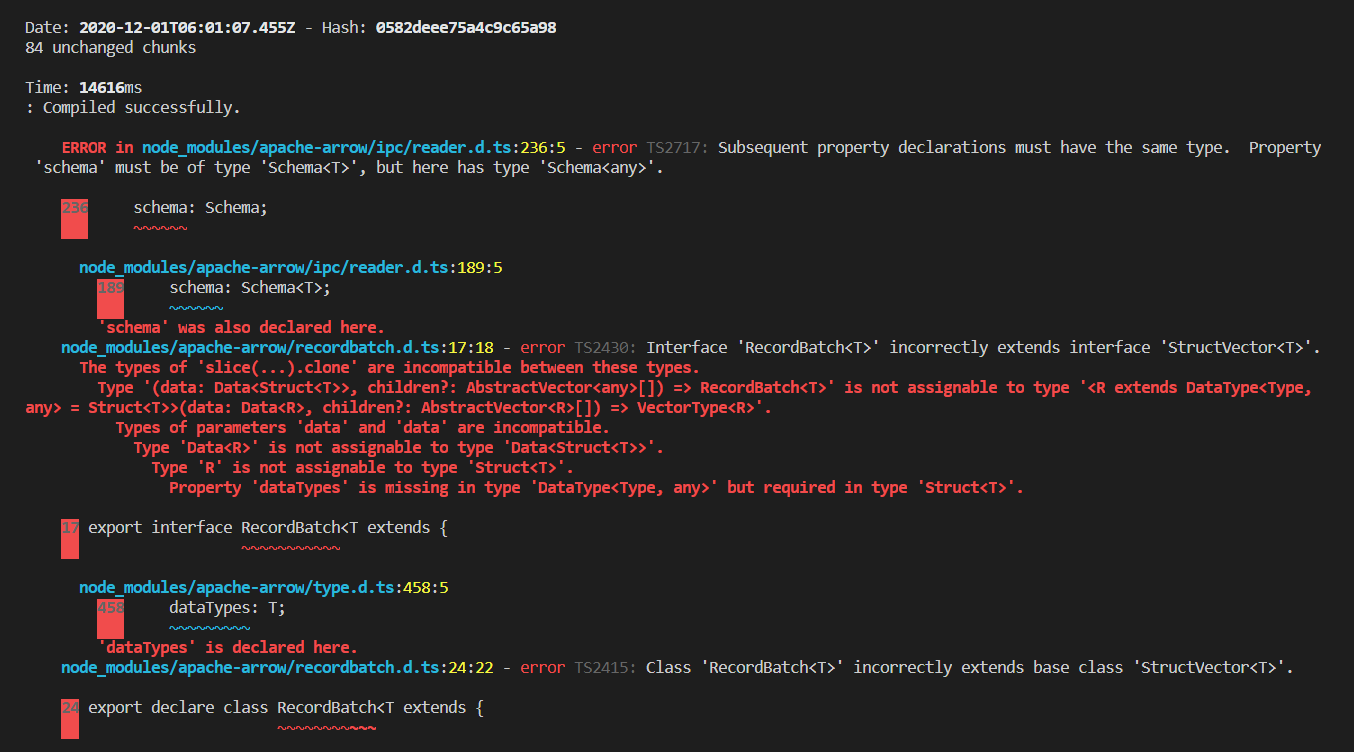 ERROR in node_modules/apache-arrow/ipc/reader.d.ts:236:5 - error TS2717: