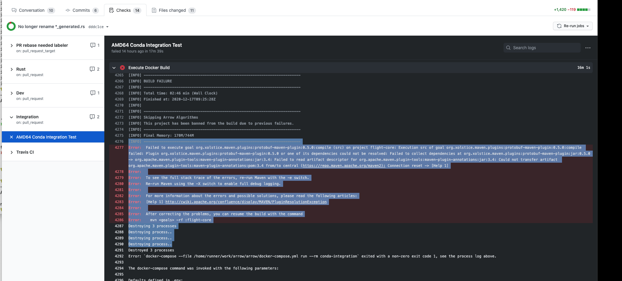 The conda integration test failed due to what appears to be some unrelated error:  I will restart the check to see if we can get a green CI run ---------------------------------------------------------------- This is an automated message from the Apache Git Service. To respond to the message, please log on to GitHub and use the URL above to go to the specific comment. For queries about this service, please contact Infrastructure at: [email protected]