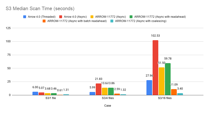 By adding coalescing from #10145 we get a significant speedup with > 1 file. The 1-file case is slower but still better than the current implementation. (It's also possible other things have changed in the meantime.)  -- This is an automated message from the Apache Git Service. To respond to the message, please log on to GitHub and use the URL above to go to the specific comment. For queries about this service, please contact Infrastructure at: [email protected]