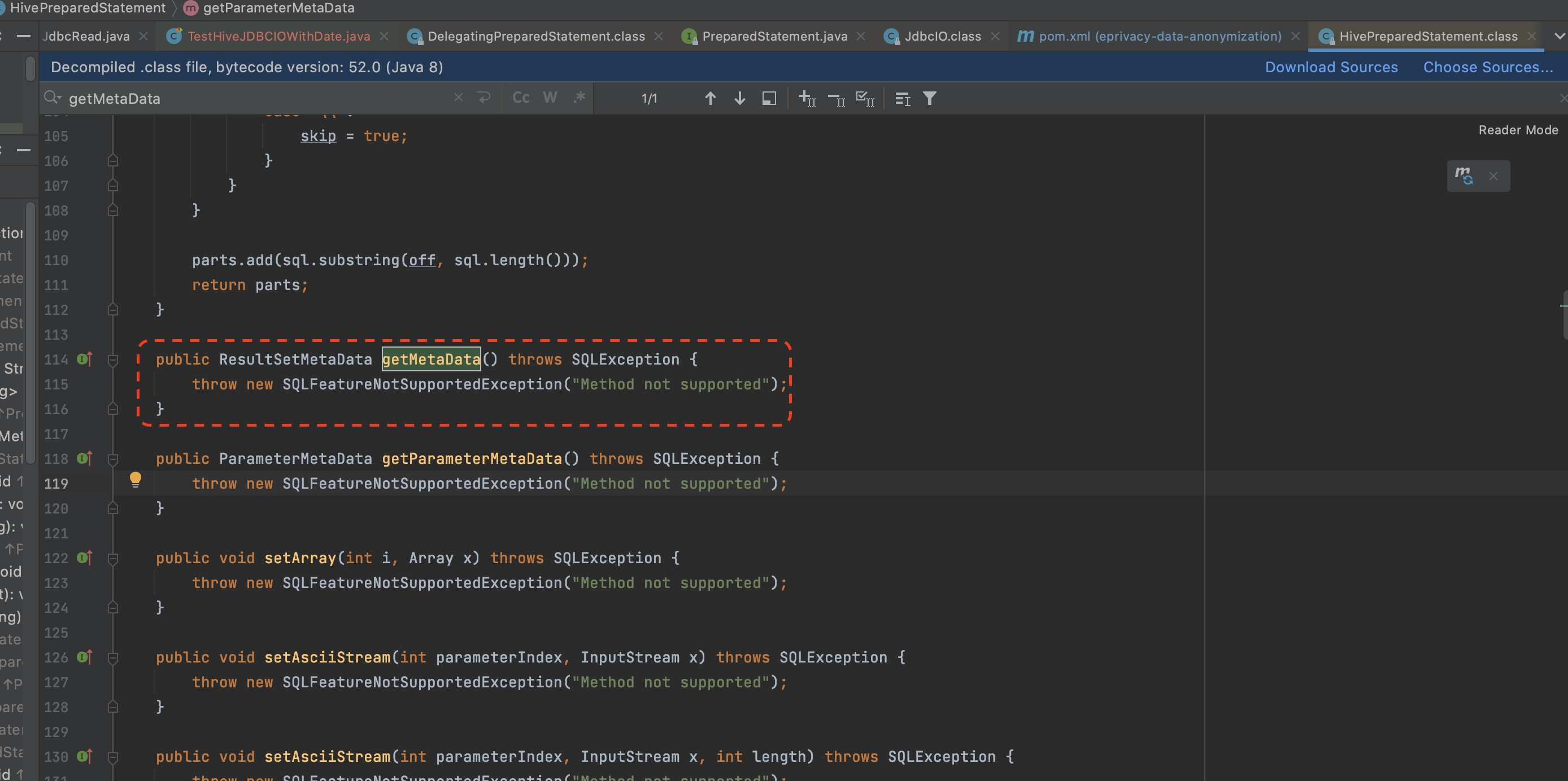 at org.apache.hive.jdbc.HivePreparedStatement.getMetaData