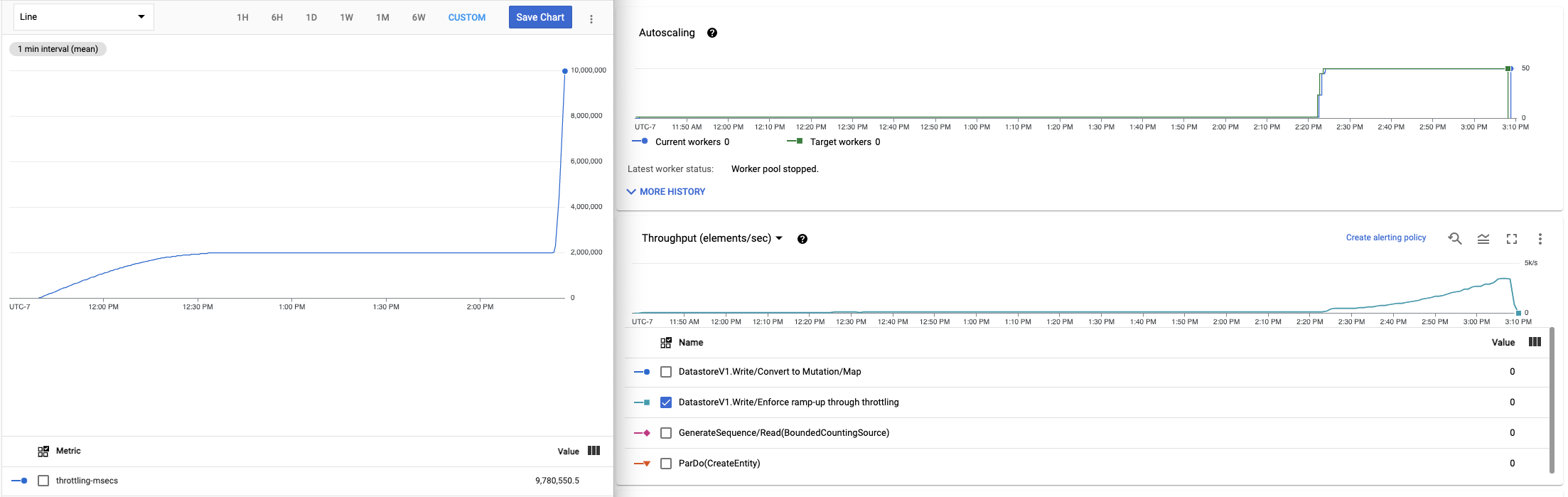 started stagnating (as expected), but Dataflow still didn't scale until 2 hours