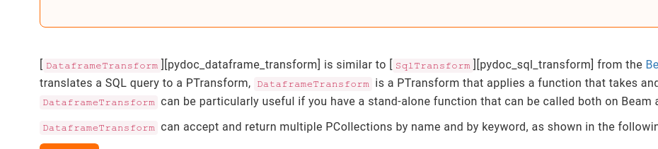 https://beam.apache.org/releases/pydoc/current/apache_beam.dataframe.transforms.html#apache_beam.dataframe.transforms.DataframeTransform