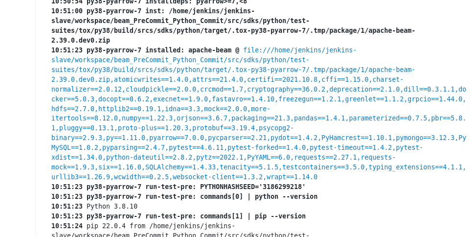 Confirmed that pyarrow-7 tests ran, and pyarrow==7.0.0 was installed, in Python PreCommit:  -- This is an automated message from the Apache Git Service. To respond to the message, please log on to GitHub and use the URL above to go to the specific comment. To unsubscribe, e-mail: [email protected] For queries about this service, please contact Infrastructure at: [email protected]