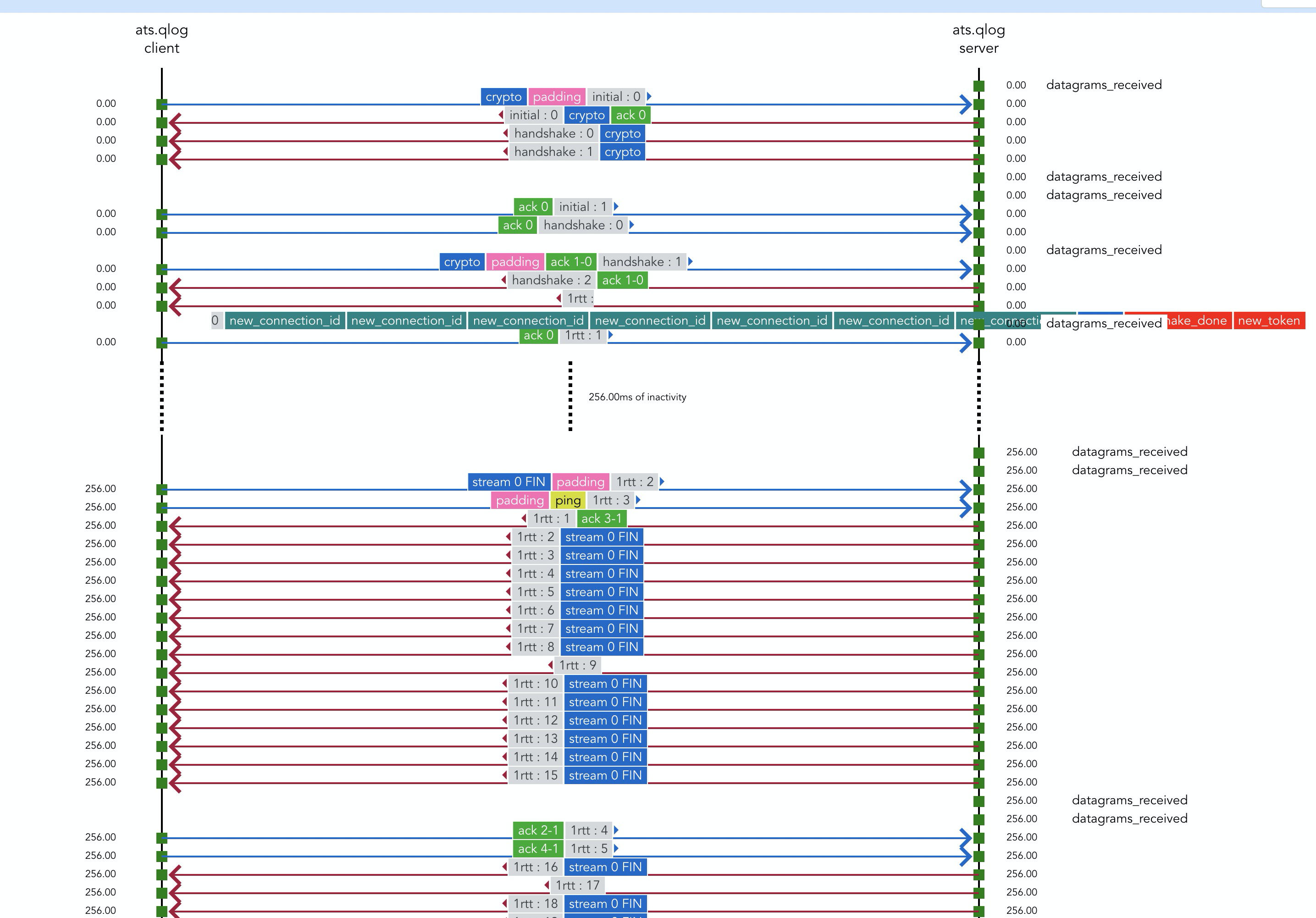 Add basic QLOG support. There are some hacked code which should be more abstract. For example: QLog has a lot events definations like packet_set, packet_lost. And hack it one by one it's not a good idea. Also it make more difficult for adding the options to turn on or turn off this feature.  Currently it only support packet_received, packet_sent, and datagrams_received event。 ---------------------------------------------------------------- This is an automated message from the Apache Git Service. To respond to the message, please log on to GitHub and use the URL above to go to the specific comment. For queries about this service, please contact Infrastructure at: [email protected]