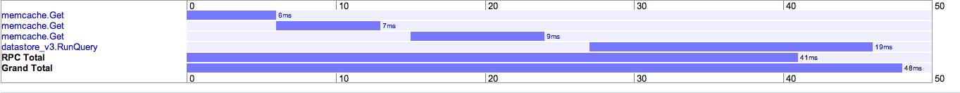 Just for the record, in case someone reads this thread in the future. I did many changes, and reduced the time from 10 seconds to few ms (although this is the server time, the user perceived time is still too long). There are no brilliant ideas, just pure logic. Basically: 1- Using "multi" functions improves quite significantly. 2- Storing big object in the cache is not such a good idea, at least in my case it did not work (or I did not know how to implement it). What I had to do is to divide the item in 2 parts: a summary and detailed view. So when I am getting a list of items on the screen, I just get the minimal necessary information. Most of the fields removed where just numbers, but the fact of using JSON makes the payload to be much bigger. On a second step I did something that can be "tricky". Instead of storing the Datastore object and convert it to endpoints message, I store the message itself. In this way I save the processing of generating the endpoints message. Accessing large items in memcache is "expensive" (80ms-100ms in my case). So I did a list of the datastore keys ID (notice, datastore_object.key.id()) of the summary objects. I use this list of keys id to multi_get all the datastore summary elements from the memcache in 1 batch. The final result (41ms): <https://lh3.googleusercontent.com/-80sbZbwWdY4/U2taP6qY6tI/AAAAAAAAEm0/_psdz4g9HCQ/s1600/divide_and_conquer.png> The real time is a bit more than what the chart shows, because the decoding and encoding of endpoints is not taken into account. The log shows about 120ms to 240ms (so yes, I am still "suspecting" endpoints is slow). The browser shows about 1.5 seconds (and that is what I really perceive). I am investigating now where the time is gone. I am not sure it is due to the network speed as I have tested in high-speed networks too. -- You received this message because you are subscribed to the Google Groups "Google App Engine" group. To unsubscribe from this group and stop receiving emails from it, send an email to [email protected]. To post to this group, send email to [email protected]. Visit this group at http://groups.google.com/group/google-appengine. For more options, visit https://groups.google.com/d/optout.