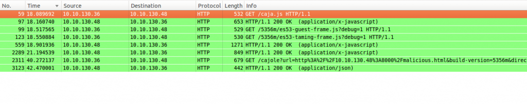 **Wireshark** In this image you can see the HTTP requests made.