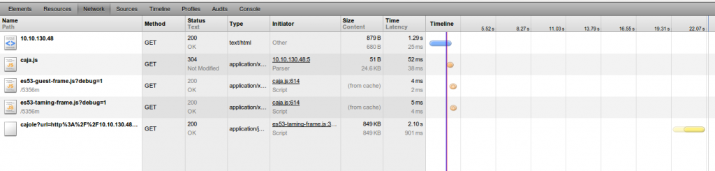 The following shows what is transfered between the HTTP requests that took most time.  **Developer Tools**   -- --- You received this message because you are subscribed to the Google Groups "Google Caja Discuss" group. To unsubscribe from this group and stop receiving emails from it, send an email to [email protected]. For more options, visit https://groups.google.com/groups/opt_out.