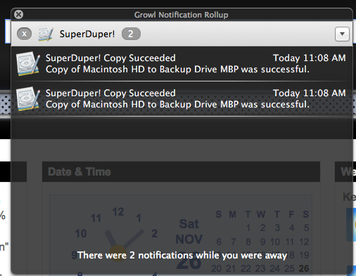 On Nov 26, 11:25 am, joelw135 <[email protected]> wrote: > After testing the MailMe theme with a few different applications I > find that dual mails are ALWAYS sent. It sends them from Hardware > Growler, and from SuperDuper (Manual Backup) now this is truly > confusing as Hardware Growler sends dual alerts at all times while > SuperDuper only sends dual alerts on Manual backup not on scheduled > since Rudy fixed that for scheduled backups. -- You received this message because you are subscribed to the Google Groups "Growl Discuss" group. To post to this group, send email to [email protected]. To unsubscribe from this group, send email to [email protected]. For more options, visit this group at http://groups.google.com/group/growldiscuss?hl=en.