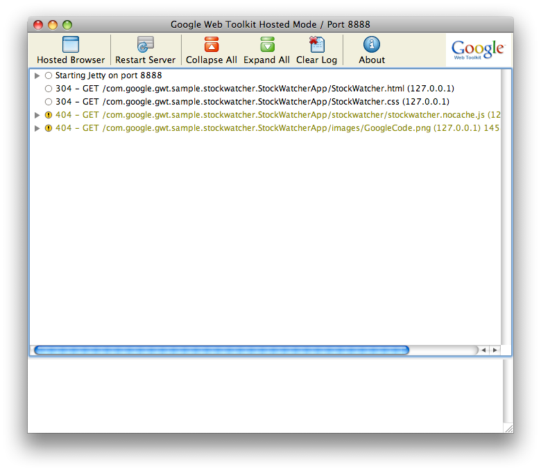 [INFO] Starting Jetty on port 8888 [INFO] 304 - GET /com.google.gwt.sample.stockwatcher.StockWatcherApp/StockWatcher.html (127.0.0.1) [INFO] 304 - GET /com.google.gwt.sample.stockwatcher.StockWatcherApp/StockWatcher.css (127.0.0.1) [WARN] 404 - GET /com.google.gwt.sample.stockwatcher.StockWatcherApp/stockwatcher/stockwatcher.nocache.js (127.0.0.1) 1473 bytes [WARN] 404 - GET /com.google.gwt.sample.stockwatcher.StockWatcherApp/images/GoogleCode.png (127.0.0.1) 1458 bytes Screenshot 1: GWT in Hosted Mode Screen<http://i299.photobucket.com/albums/mm283/javapda/Picture1-1.png> http://i299.photobucket.com/albums/mm283/javapda/Picture1-1.png Screenshot 2: Output screen when run in Hosted Mode<http://i299.photobucket.com/albums/mm283/javapda/Picture2.png> http://i299.photobucket.com/albums/mm283/javapda/Picture2.png I am running MACOSX and using the JDK 1.5 (32-bit) Here is the output when running: mvn gwt:run Using Java version: 1.5 [INFO] Scanning for projects... [INFO] Searching repository for plugin with prefix: 'gwt'. [INFO] ------------------------------------------------------------------------ [INFO] Building stockwatcher-gwt-using-mvn [INFO] task-segment: [gwt:run] [INFO] ------------------------------------------------------------------------ [INFO] Preparing gwt:run [INFO] [resources:resources] [WARNING] Using platform encoding (MacRoman actually) to copy filtered resources, i.e. build is platform dependent! [INFO] Copying 4 resources [INFO] [compiler:compile] [INFO] Nothing to compile - all classes are up to date [WARNING] Attempting to build MavenProject instance for Artifact (org.codehaus.mojo:gwt-maven-plugin:1.1-20090508.134520-48) of type: maven-plugin; constructing POM artifact instead. [INFO] [gwt:run] [INFO] using GWT jars from project dependencies : 1.6.4 [INFO] Unpack native libraries required to run GWT [INFO] establishing classpath list (scope = runtime) [INFO] create exploded Jetty webapp in /Users/jkroub/Workspaces/javapda/stockwatcher-gwt-using-mvn/war [WARNING] Your POM <build><outputdirectory> does not match your hosted webapp WEB-INF/classes folder for GWT Hosted browser to see your classes. [ERROR] 2009-05-08 10:50:58.742 java[4423:817] [Java CocoaComponent compatibility mode]: Enabled [ERROR] 2009-05-08 10:50:58.743 java[4423:817] [Java CocoaComponent compatibility mode]: Setting timeout for SWT to 0.100000 Thank you On Fri, May 1, 2009 at 11:57 AM, Farrukh Najmi <[email protected]>wrote: > > Said another way.... > > Any one starting on GWT projects now should be using the codehaus gwt-maven > plugin at > > <http://mojo.codehaus.org/gwt-maven-plugin/1.1-SNAPSHOT> > > Please see a sample project here: > > <http://www.wellfleetsoftware.com/files/stockwatcher.zip> > > Note above sample could be slightly out of date. > > On Fri, May 1, 2009 at 11:11 AM, Charlie Collins < > [email protected]> wrote: > >> >> First, this list is for maven-googlewebtoolkit2-plugin (the google >> code hosting pluginm aka, GWT-Maven). There is another group if you >> have questions about the Codehaus gwt-maven-plugin - >> http://groups.google.com/group/codehaus-mojo-gwt-maven-plugin-users. >> >> Second, this plugin is NOT moving to Codehaus. The Codehaus plugin >> team merged this plugin there. They also have some of their own goals, >> and their own way of doing things, so it's not identical, but they did >> merge in our code at one point. This plugin is going to be frozen, >> and future development will/should happen on the Codehaus plugin. >> >> I would encourage anyone just getting into it to use the Codehaus >> plugin (and use that mailing list, that issue tracker, etc, if you >> have problems). This plugin has been around a long time, and many >> people know it/trust it, so it's still here, but over time, everyone >> should merge to the Codehaus plugin. >> >> >> On Apr 30, 10:26 am, jsantaelena <[email protected]> wrote: >> > I'm pretty confused about what plugin to use. Reading the issue list I >> > saw that this plugin is moving to codehaus, then I found this onehttp:// >> mojo.codehaus.org/gwt-maven-plugin/1.0/. Tryien to use it i to >> > compile, I had a "GWTCompiler#main() failed". >> > So, what is the official version of it? >> > >> > Thanks. >> >> > > > -- > Regards, > Farrukh > > > > > --~--~---------~--~----~------------~-------~--~----~ You received this message because you are subscribed to the Google Groups "gwt-maven" group. To post to this group, send email to [email protected] To unsubscribe from this group, send email to [email protected] For more options, visit this group at http://groups.google.com/group/gwt-maven?hl=en -~----------~----~----~----~------~----~------~--~---