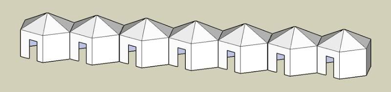 What I'm looking to do is build a series of seven connected 6' hexayurts in a single line out on the playa: http://i93.photobucket.com/albums/l44/yonderboy777/seven_temples.jpg These will be temples that ideally will each be painted a different color. (I also may build a separate hexayurt in lieu of a tent, for myself, depending on how many people accompany us in the RV). I've been poking around the message archives and plan to do so in a more thorough way when it comes closer to actual decision time. In the meantime I'd love to hear any tips on materials and ordering (I am in Fort Worth, Texas), building out on the playa and keeping a structure like this intact, etc. alex -- You received this message because you are subscribed to the Google Groups "hexayurt" group. To post to this group, send email to [email protected]. To unsubscribe from this group, send email to [email protected]. For more options, visit this group at http://groups.google.com/group/hexayurt?hl=en.