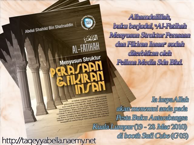 Pujian yang seluas-luasnya hanya layak dipanjatkan kepada Allah SWT yang telah menetapkan segala musabab sehingga sebab-sebab agar tercapainya sebuah keinginan menjadi kenyataan. Allah SWT sahajahlah yang layak mendapat pujian atas apa yang telah terlaksana. Sungguh diri mengakui kelemahan yang hakikatnya tidak mampu mencapai apa-apa melainkan dengan persetujuan dan ketentuan Allah yang Maha segala Maha. Selawat dan salam tidak terlupakan untuk nabi Muhammad SAW yang sangat mulia dengan akhlaknya. Kegigihannya menjalani kehidupan manusiawi sambil mengemban amanat suci menjadi ingatan kita sepanjang hayat. Sabarnya baginda sehingga rela menderita asalkan risalah ini sampai ke pangkuan kita. Allah SWT dan para malaikat bersalawat ke atasmu ya Rasulallah.. Alhamdulillah, tiada kata yang mampu terucap melainkan ungkapan rasa syukur. Siapa yang menyangka pada akhirnya sebuah buku berjaya disiapkan. Kami sangat menyedari kelemahan diri, kekurangan ilmu dan ketumpulan analisa, namun kami masih memaksakan diri untuk berani menulis. Semoga Allah menghadiahkan kami 'tawfiq dalam amal, setelah usaha memahami dan memahamkan dilaksanakan. Semoga Allah menjadikan kami seorang yang semakin tersuluh sinar hidayah dengan ilmu dan bukan yang semakin jauh dari Allah karena ilmu. *Manizdada 'ilman lam yazdad hudan lam yazdad minallahi illa bu'dan! Wal 'iyazubillah!* Surah Al-Fatihah bukanlah sebuah surah yang asing bagi kita umat Islam. Lafaznya lancar mengalir dari lidah kita. Keseringan kita melantunkan ayat-ayat surah ini sehingga 17 kali sehari seharusnya menghantarkan kita kepada sebuah keadaan yang menginsafkan kita dan menjadikan kita terkesima akan keagungan makna yang terkandung disebalik ayat-ayatnya yang tersurat. Namun adakah lantunan yang mengalir dari lidah kita itu menyapa minda untuk merenung dan menyirami hati agar segar bertenaga!? Pernah suatu ketika Ustaz Amru Khaled, seorang dai terkemuka di Timur Tengah melaksanakan solat berjemaah di masjid. Seorang pemuda disebelahnya menangis ketika sedang solat. Penuh kekhusyukan. Usai solat beliau bertanya, "Sahabat, apa yang menyebabkan anda menangis ketika solat tadi?" Pemuda itu menjelaskan dengan semangat, "Saya ingin menikmati khusyuk di dalam solat, maka saya hadirkan ke dalam minda peristiwa yang mampu membuatkan saya menangis seperti peristiwa kelakuan dosa yang pernah saya lakukan, dengan harapan Allah SWT memperhatikan kesungguhan ibadah saya.." Beliau diam seketika sebelum menjawap. "Sahabat, bukan begitu caranya kita menimbulkan perasaan khusyuk di dalam solat. Allah SWT sengaja mensyariatkan agar imam memperdengarkan bacaannya ketika solat. Pensyariatan itu pasti mempunyai sebab dan tujuan yang tertentu." Al-Quran adalah kalamullah sedangkan solat adalah sebuah bentuk interaksi yang formal bersifat ritual antara Allah dan manusia. Maka, ketika disyariatkan kita membaca kalamullah dalam solat, ia seakan-akan menyuruh kita untuk mendengar dan menyimak apa yang Allah perkatakan kepada kita dalam interaksi formal kita dengan Allah. Bagaimana mungkin ketika imam membacakan ayat mengenai pembahagian harta warisan lalu kita sebagai makmum membayangkan tentang dosa dan menangis! Adakah itu yang dinamakan khusyuk!? Mungkin beliau mengatakan hal sebegini kepada pemuda itu atas dasar mereka memang berbangsa arab. Tidak pelik jika ada ulamak yang sangat menekankan pemahaman bahasa Arab bagi masyarakat muslim bahkan ada diantara mereka yang mewajibkan. Perbincangan mengenai hal di atas sangat relevan. Bagaimana mungkin ayat-ayat Allah akan memberikan kesan kepada manusia jika ia dibaca tanpa pemahaman? Sudut pandang inilah yang pada mulanya memberikan inspirasi untuk menyumbang sesuatu kepada diri sendiri. Maka usaha meningkatkan pemahaman mengenai Al-Fatihah dilakukan. Demi mencapai tujuan ini, kami dengan sukarelanya telah menawarkan kepada sahabat-sahabat untuk mengkongsikan hasil usaha ini bersama mereka. Maka, terbentuklah sebuah halaqah kecil membahaskan ayat-ayat Al-Fatihah di sebuah markaz milik Akademi Al-Quran Medik Malaysia yang berada di sebuah sudut kota kaherah. Ayat demi ayat diperbincangkan. Suatu yang agung yang tidak dimiliki surah-surah lain adalah kelengkapan makna yang terkandung di dalam surah ini. Maha suci Allah yang telah meletakan surah ini di urutan pertama Al-Quran. Maka tepatlah ia dengan namanya iaitu Fatihah atau pembuka. Ia seakan-akan menjadi pintu kepada segala topik yang diperbincangkan Al-Quran. Tidak hairanlah jika ia turut digelar ummul furqan atau ummul kitab kerana ia umpama jantung yang memainkan peranan yang cukup besar dalam keseluruhan (holistik) sebuah Al-Quran. Hal ini jelas terasa ketika diperintahkan membaca ayat-ayat yang termampu dari Al-Quran setelah bacaan Al-Fatihah dalam solat. Wujud keterkaitan yang nyata antara Al-Fatihah dan apa saja ayat dari Al-Quran. Persoalan yang timbul, adakah ke-holistik-an Al-Fatihah dan kesinambungannya dengan segala topik perbincangan di dalam Al-Quran, disedari dan dihayati oleh setiap individu yang membaca Al-Fatihah? Atau, Al-Fatihah masih lagi menjadi sebuah mantera yang hanya perlu dibacakan tanpa perlu memahami isi kandungannya? Buku ini, masih membicarakan Al-Fatihah dengan segala maknanya yang terkandung di dalam kitab-kitab tafsir yang terkemuka. Usaha saya disini bukanlah menghadirkan makna atau pemahaman baru di dalam Al-Fatihah. Tetapi apa yang menjadi fokus adalah bagaimana Al-Fatihah yang selama ini kita pahami ini, memberikan sebuah suntikan baru sehingga membentuk sebuah kitaran yang saling terkait antara satu dengan yang lain. Keterkaitan kita selaku makhluk yang dicipta tidak pernah terlepas dari Zat yang mencipta kita. Keterkaitan kita sebagai hamba yang bertugas mempersembahkan tidak akan terpisah dari Zat yang selayaknya menerima persembahan itu. Keterkaitan kita antara kehendak dan ketentuan atau ketetapan. Keterkaitan-keterkaitan yang tanpa penghujung ini perlu disatukan kemudian disusun sehingga menjadi sebuah tatanan yang jelas di mana perm