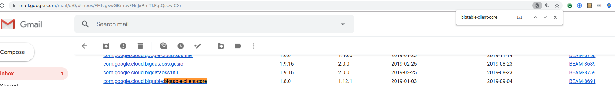 Now the email report is complete. It includes bigtable-client-core, for