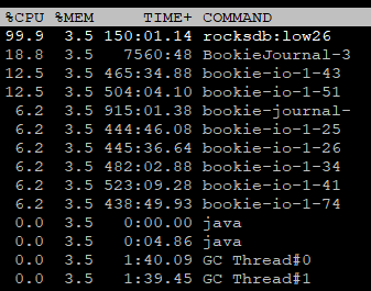 **QUESTION** In our usage scenario, in the case of high-throughput writes, we found that the cpu utilization of rokskdb:low:XX thread can easily reach 100%. Are there any good suggestions for optimizing the rocksdb parameters in this situation? As you can see from the screenshot:  We have tried turning off the compression, but nothing seems to have changed. ``` dbStorage_rocksDB_lz4CompressionEnabled=false ``` Any suggestions would be greatly appreciated~ -- This is an automated message from the Apache Git Service. To respond to the message, please log on to GitHub and use the URL above to go to the specific comment. To unsubscribe, e-mail: [email protected] For queries about this service, please contact Infrastructure at: [email protected]