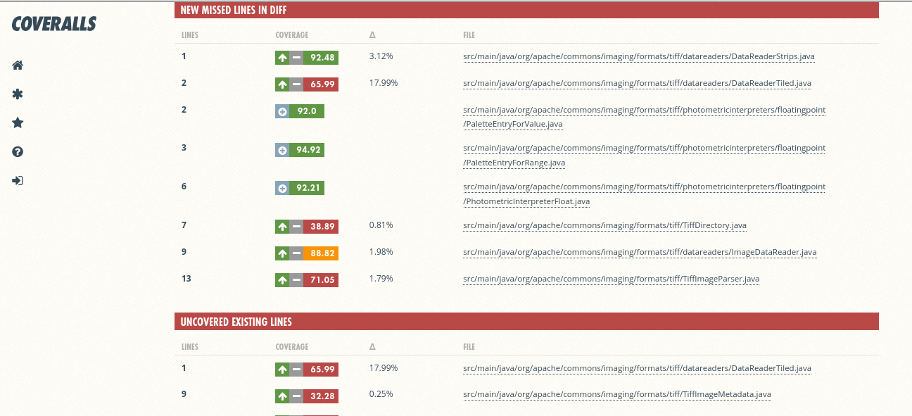 >test coverage of new code (I lost track of how much is covered here) Some of the new code is not covered by tests. But alas I think it's quite hard to find images for these tests. Later we may look into having some sort of image generator, or try to locate more test images. https://coveralls.io/builds/30831964  ---------------------------------------------------------------- This is an automated message from the Apache Git Service. To respond to the message, please log on to GitHub and use the URL above to go to the specific comment. For queries about this service, please contact Infrastructure at: [email protected]