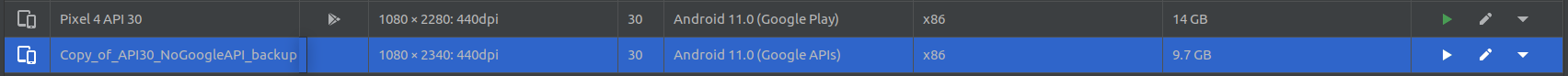 > Hi @erisu @Faksprod @breautek > > I ran this ionic application on Google Pixel 3a which runs on android 11, here application works as expected. But some of our clients were using oneplus, realme and honor which has Android11. In these mobiles, application hangs on splash screen. > > @breautek, debuggin the app from the Android Studio IDE is not possible for me. As app works in my environment. > > Got stuck on this issue.. Try using an AOSP emulator (an emulator without Google Services) and see if your issue is reproduced then. This is a hunch but perhaps your app contains something that depends on Google Services and these phones either have an incompatible version or Google Services is not available. Emulators without the Google Play icon are emulators with no Google Services, such as the highlighted one below in my screenshot.  -- This is an automated message from the Apache Git Service. To respond to the message, please log on to GitHub and use the URL above to go to the specific comment. To unsubscribe, e-mail: [email protected] For queries about this service, please contact Infrastructure at: [email protected] --------------------------------------------------------------------- To unsubscribe, e-mail: [email protected] For additional commands, e-mail: [email protected]
