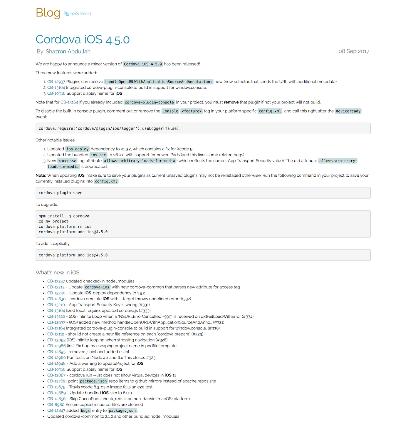 CB-13247 - Blog post for Cordova iOS 4.5.0 Release