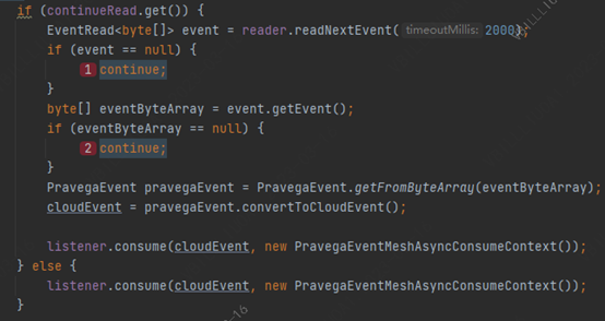 ### Search before asking - [X] I had searched in the [issues](https://github.com/apache/eventmesh/issues?q=is%3Aissue) and found no similar issues. ### Enhancement Request  located at: eventmesh-storage/eventmesh-storage-pravega/src/main/java/org/apache/eventmesh/storage/pravega/client/SubscribeTask.java line 50 analysis and explanation: a. common part can be extracted removing branch b. reduce the total number of continue statements in this loop to use at most one. ### Describe the solution you'd like  ### Are you willing to submit PR? - [ ] Yes I am willing to submit a PR! -- This is an automated message from the Apache Git Service. To respond to the message, please log on to GitHub and use the URL above to go to the specific comment. To unsubscribe, e-mail: [email protected] For queries about this service, please contact Infrastructure at: [email protected] --------------------------------------------------------------------- To unsubscribe, e-mail: [email protected] For additional commands, e-mail: [email protected]