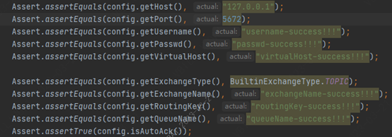 ### Search before asking - [X] I had searched in the [issues](https://github.com/apache/eventmesh/issues?q=is%3Aissue) and found no similar issues. ### Enhancement Request  located at: eventmesh-storage/eventmesh-storage-rabbitmq/src/test/java/org/apache/eventmesh/storage/rabbitmq/config/ConfigurationHolderTest.java line 50-60 analysis and explanation: The standard assertions library methods such as org.junit.Assert.assertEquals, and org.junit.Assert.assertSame expect the first argument to be the expected value and the second argument to be the actual value. For AssertJ, it’s the other way around, the argument of org.assertj.core.api.Assertions.assertThat is the actual value, and the subsequent calls contain the expected values. Swap them, and your test will still have the same outcome (succeed/fail when it should) but the error messages will be confusing. ### Describe the solution you'd like Swap actual and expected values. ### Are you willing to submit PR? - [ ] Yes I am willing to submit a PR! -- This is an automated message from the Apache Git Service. To respond to the message, please log on to GitHub and use the URL above to go to the specific comment. To unsubscribe, e-mail: [email protected] For queries about this service, please contact Infrastructure at: [email protected] --------------------------------------------------------------------- To unsubscribe, e-mail: [email protected] For additional commands, e-mail: [email protected]