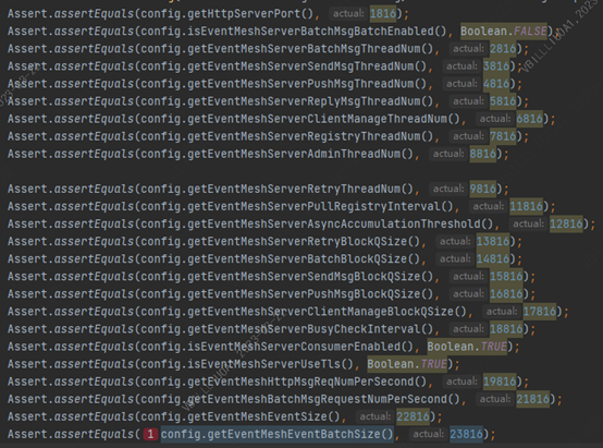 ### Search before asking - [X] I had searched in the [issues](https://github.com/apache/eventmesh/issues?q=is%3Aissue) and found no similar issues. ### Enhancement Request    Located at: eventmesh-runtime/src/test/java/org/apache/eventmesh/runtime/configuration/EventMeshHTTPConfigurationTest.java line 48-72,77,81 analysis and explanation: The standard assertions library methods such as org.junit.Assert.assertEquals, and org.junit.Assert.assertSame expect the first argument to be the expected value and the second argument to be the actual value. For AssertJ, it’s the other way around, the argument of org.assertj.core.api.Assertions.assertThat is the actual value, and the subsequent calls contain the expected values. Swap them, and your test will still have the same outcome (succeed/fail when it should) but the error messages will be confusing. ### Describe the solution you'd like Swap actual and expected values. ### Are you willing to submit PR? - [ ] Yes I am willing to submit a PR! -- This is an automated message from the Apache Git Service. To respond to the message, please log on to GitHub and use the URL above to go to the specific comment. To unsubscribe, e-mail: [email protected] For queries about this service, please contact Infrastructure at: [email protected] --------------------------------------------------------------------- To unsubscribe, e-mail: [email protected] For additional commands, e-mail: [email protected]