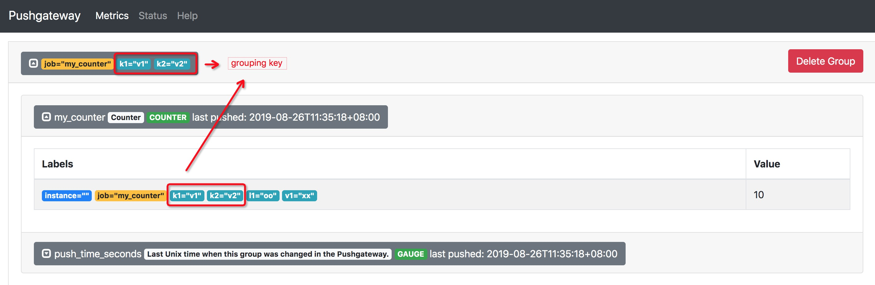 kaibozhou edited a comment on issue #9517: [FLINK-13779][metrics] PrometheusPushGatewayReporter support push metrics with groupingKey URL: https://github.com/apache/flink/pull/9517#issuecomment-524689138 Hi, @StephanEwen @zentol Thanks for your review. And if users do not specify groupingKey, the reporter will pass null which will be ignored by pushGateway. So it has no impact on the way of using the push gateway without grouping keys. The groupingKey is not just a global tag that applied to all metrics, but is also to specify the groups. From the doc of [pushgateway](https://github.com/prometheus/pushgateway#command-line): > "Pushed metrics are managed in groups, identified by a grouping key of any number of labels, of which the first must be the job label. The groups are easy to inspect via the web interface." It is a special kind of label for pushgateway. The following two pictures are the tests I made.   Thanks Kaibo