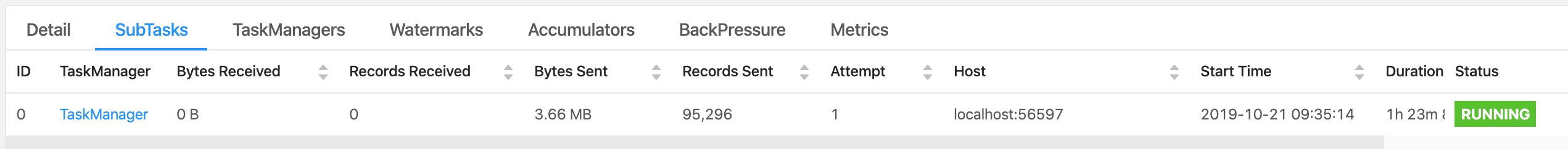 jinglining commented on issue #9601: [FLINK-13894][web]Web Ui add log url for subtask of vertex URL: https://github.com/apache/flink/pull/9601#issuecomment-544329926 > Could we not update the `host` column to include the port (like on the taskmanagers page) and link to the TaskManager page? Wouldn't this effectively work like the current iteration, just without an additional column? Like this: