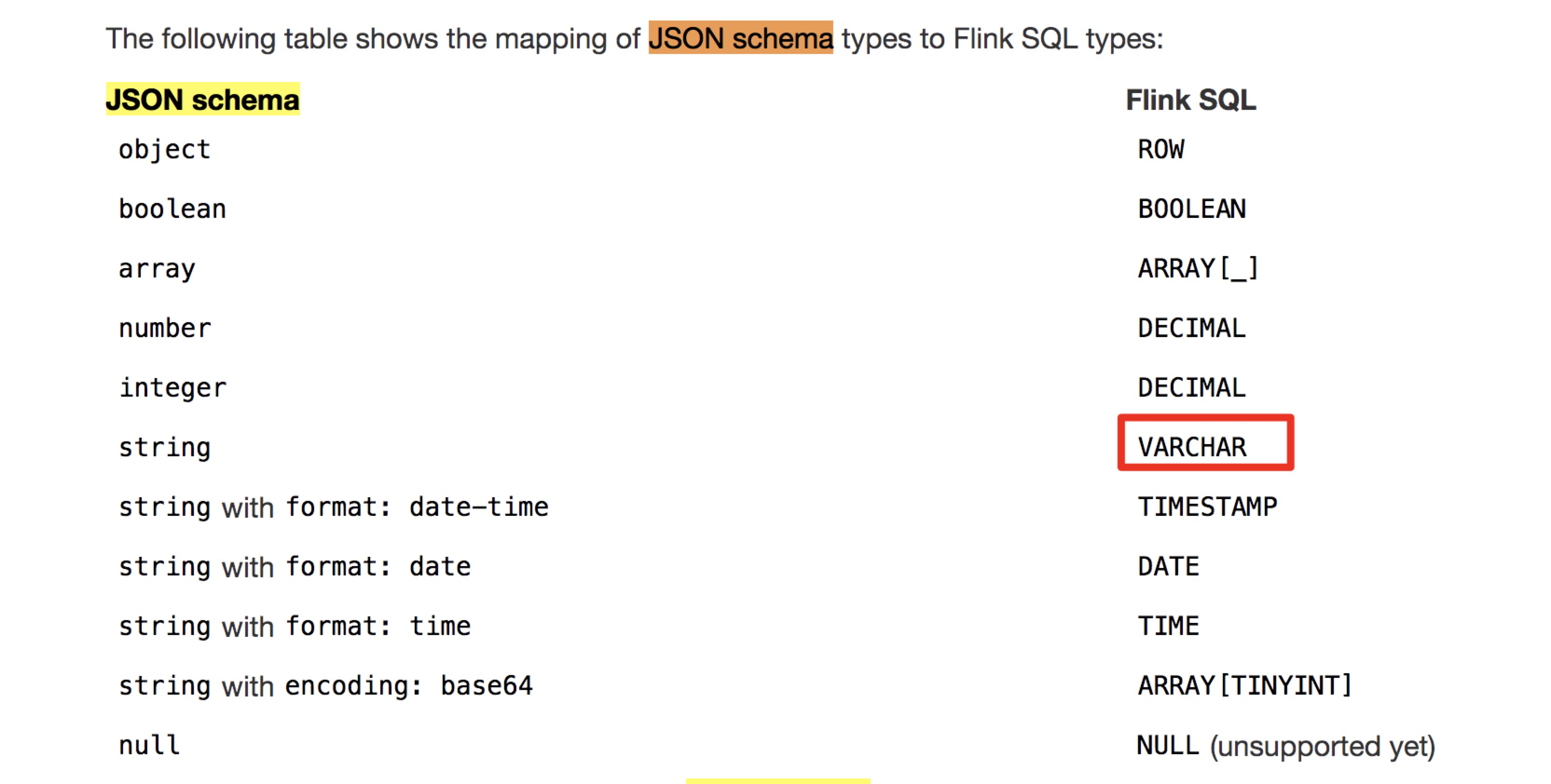 hehuiyuan opened a new pull request #10582: [FLINK-15159][DOC] Update the mapping of json schema and Flink SQL types for `string` URL: https://github.com/apache/flink/pull/10582 ## What is the purpose of the change  The string type in the json schema is mapped to STRING in the flink sql types which is easier to understand. ## Documentation - Does this pull request introduce a new feature? ( no)