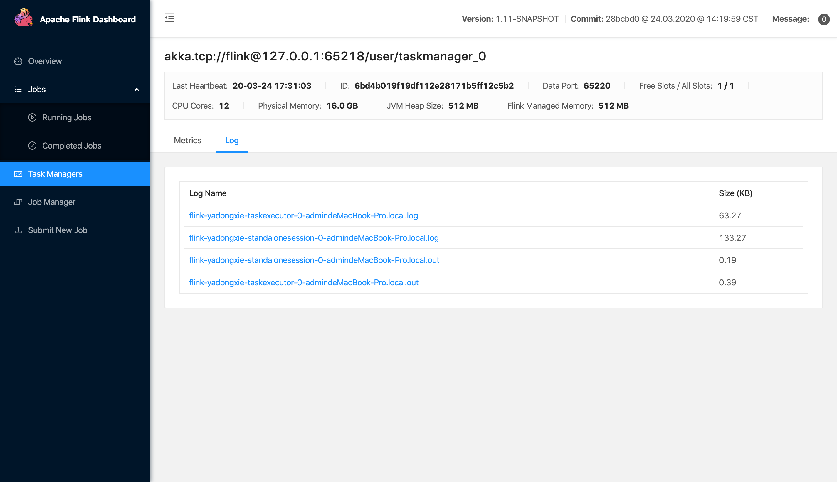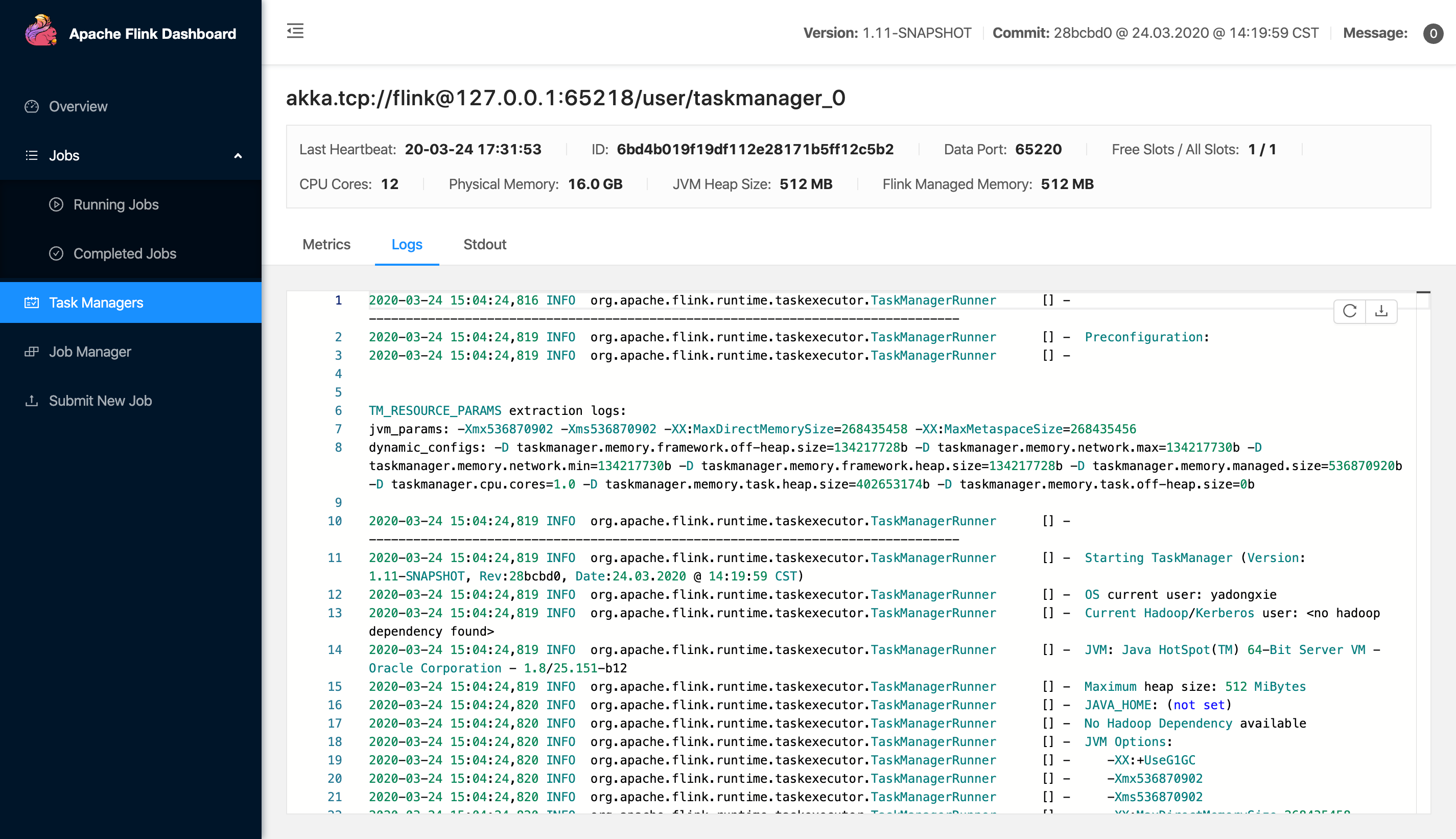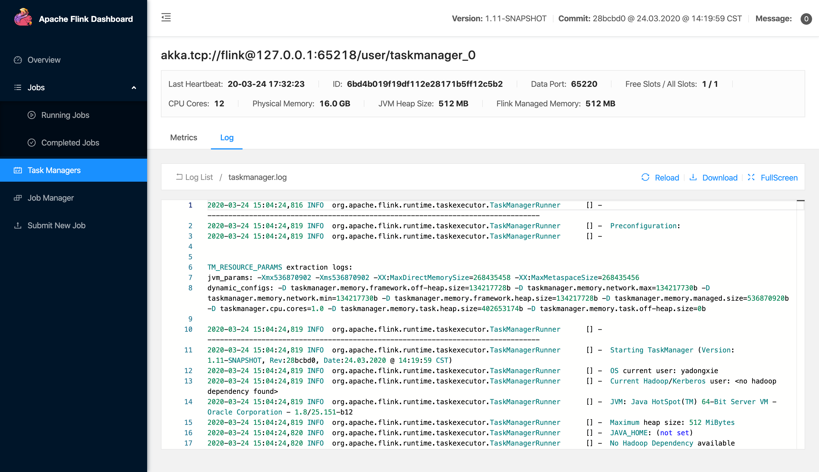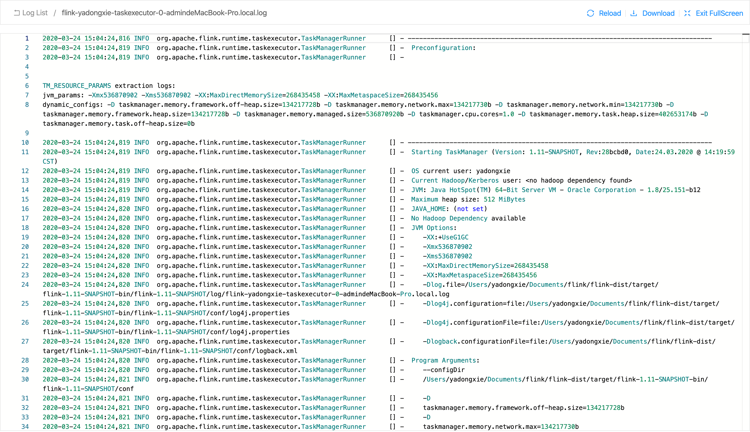 vthinkxie opened a new pull request #11498: [FLINK-16741][WEB] add tm log list & tm log detail page URL: https://github.com/apache/flink/pull/11498 ## What is the purpose of the change ref https://issues.apache.org/jira/browse/FLINK-16741 ## Brief change log add TM log list add TM log detail ## Verifying this change - the tm log list - the tm log detail - check the download button - check the reload button - check the fullscreen button - jump from the job Taskmanagers drawer to the tm detail - jump from the job Subtasks drawer to the tm detail before:  after: list:  log-detail from the list:  full screen:  log detail from the job's taskmanagers/subtasks drawer  ## Does this pull request potentially affect one of the following parts: - Dependencies (does it add or upgrade a dependency): (no) - The public API, i.e., is any changed class annotated with `@Public(Evolving)`: (no) - The serializers: (no) - The runtime per-record code paths (performance sensitive): (no) - Anything that affects deployment or recovery: JobManager (and its components), Checkpointing, Yarn/Mesos, ZooKeeper: (no) - The S3 file system connector: (no) ## Documentation - Does this pull request introduce a new feature? (no) - If yes, how is the feature documented? (not documented)
