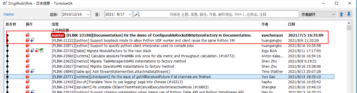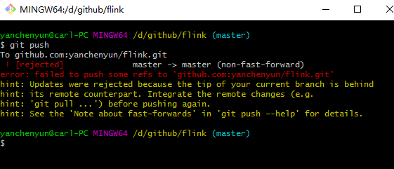 @Myasuka i have rebase master, the conflict was resolved, and squash commits into one by using the tool which name is TortoiseGit. The branch tree looks normal as follows,  However, some exceptions as follows when I push local git to remote yanchenyun/master  If this is correct, what should I do next? THX! -- This is an automated message from the Apache Git Service. To respond to the message, please log on to GitHub and use the URL above to go to the specific comment. To unsubscribe, e-mail: [email protected] For queries about this service, please contact Infrastructure at: [email protected]