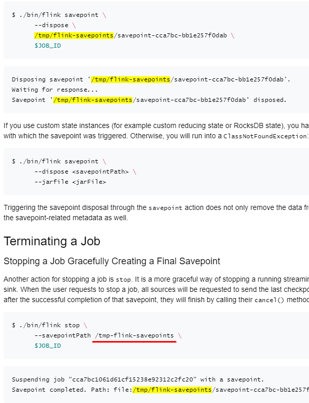 @rmetzger `/tmp/flink-savepoints` is a consistent path for savepoints on this page, so I think `/tmp-flink-savepoints` is a typo  -- This is an automated message from the Apache Git Service. To respond to the message, please log on to GitHub and use the URL above to go to the specific comment. To unsubscribe, e-mail: [email protected] For queries about this service, please contact Infrastructure at: [email protected]
